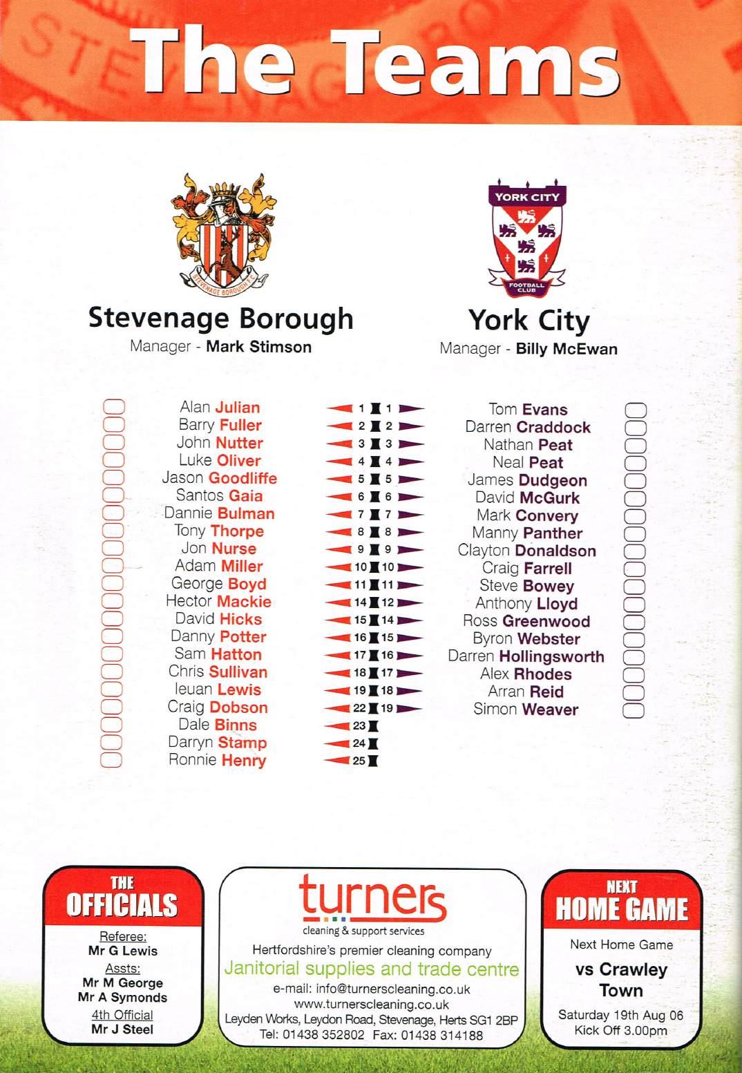 Stevenage v York, 15/08/2006