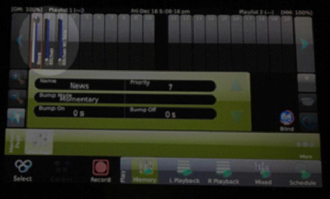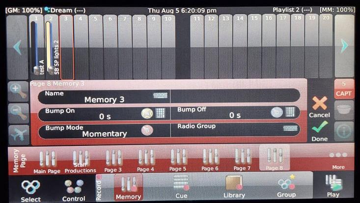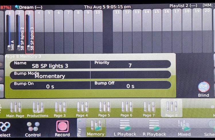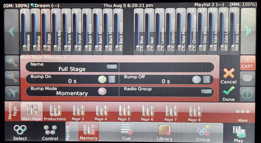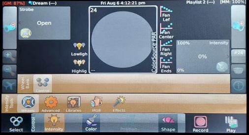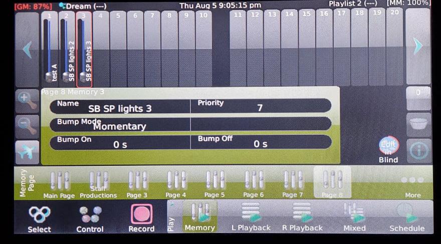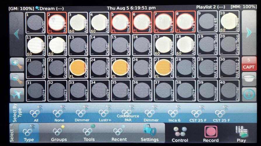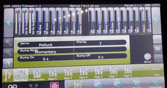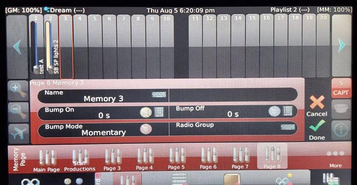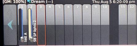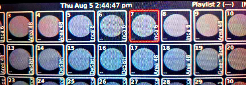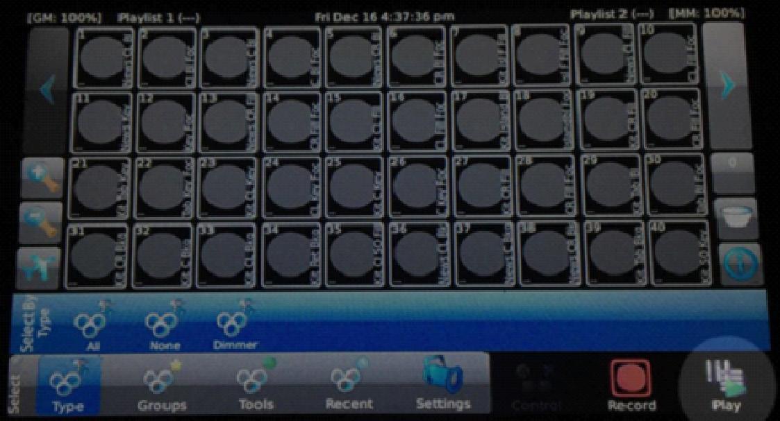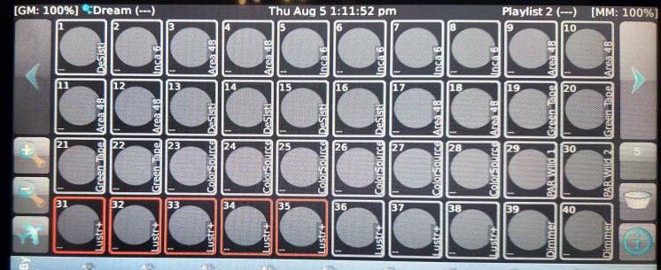 • Click on the PLAY icon to bring up the playlist on the current page - Use the Physical Slider that corresponds to the slot number you just renamed to raise and lower the lights in the set you just saved