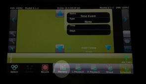 - Accessed by pressing the RED record button at the bottom of the Touch Screen or Record Button on the right side of the lighting board