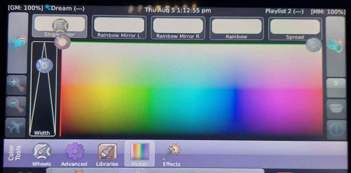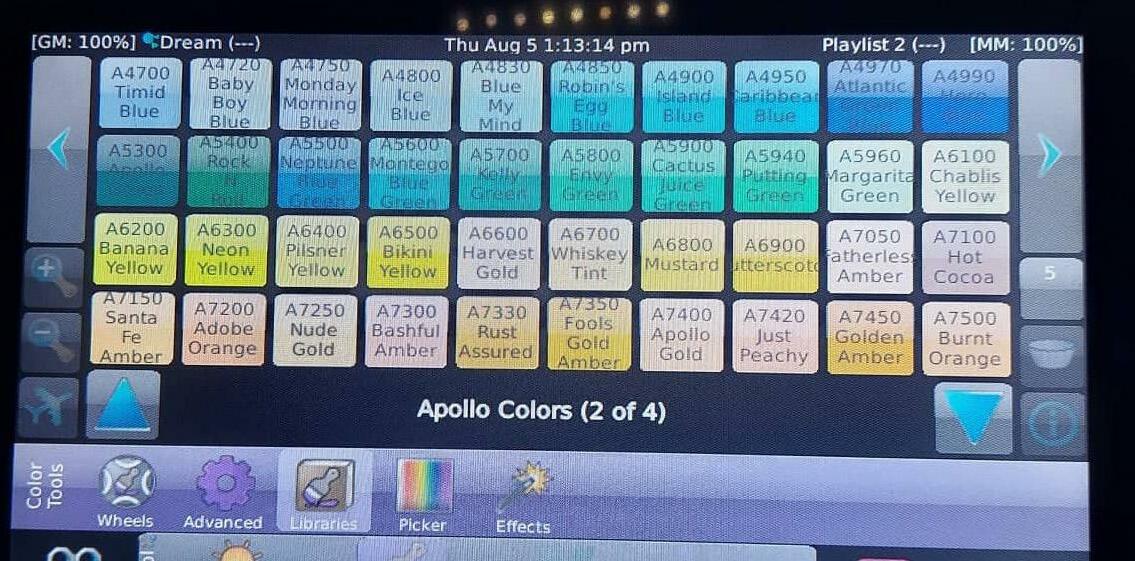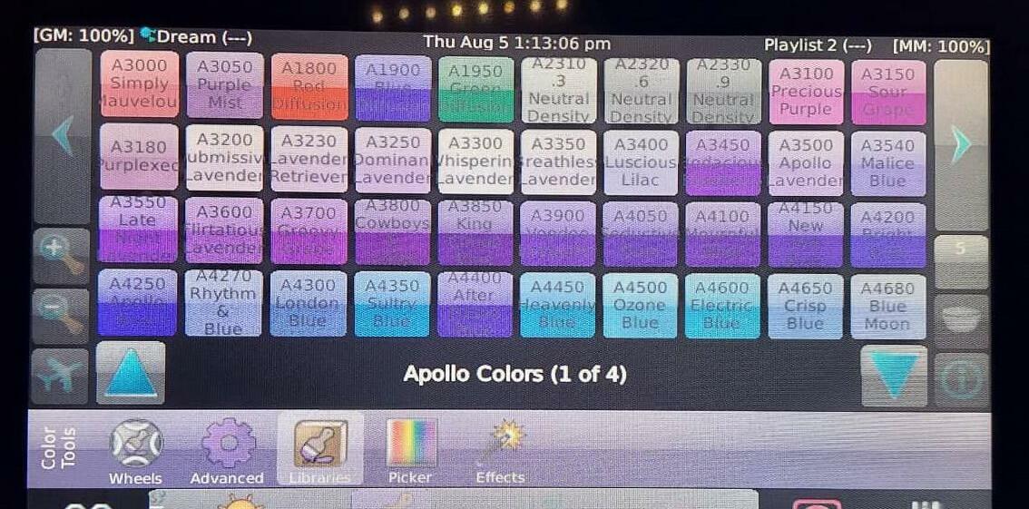 • Use either the Color Picker or the Color Library (Libraries) to adjust the color of the light(s) you have selected