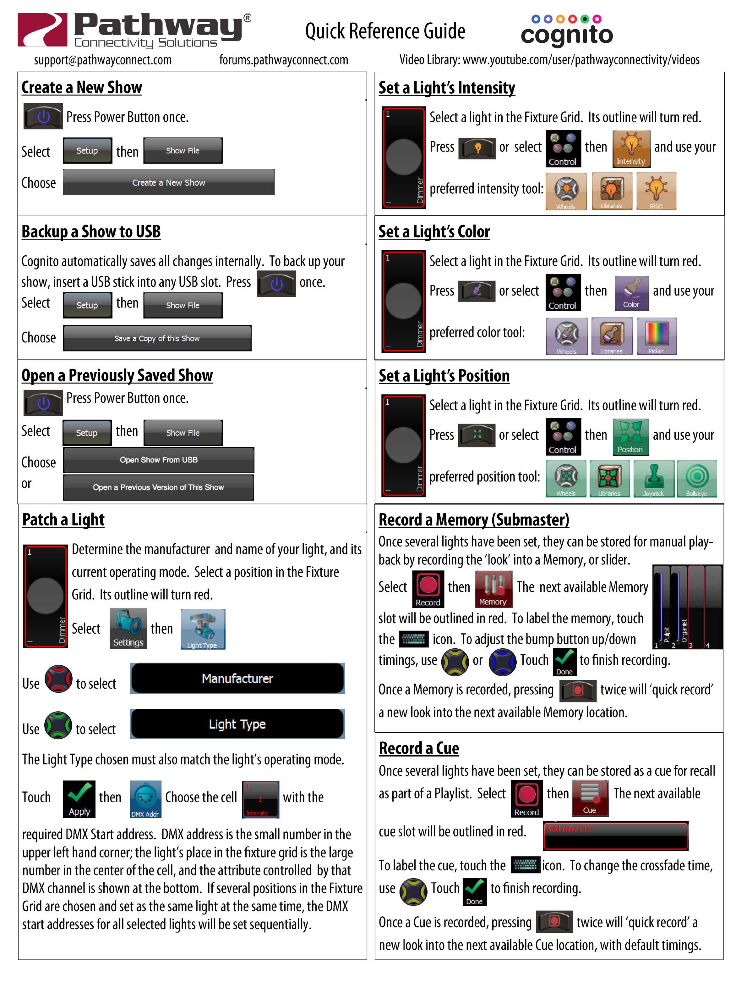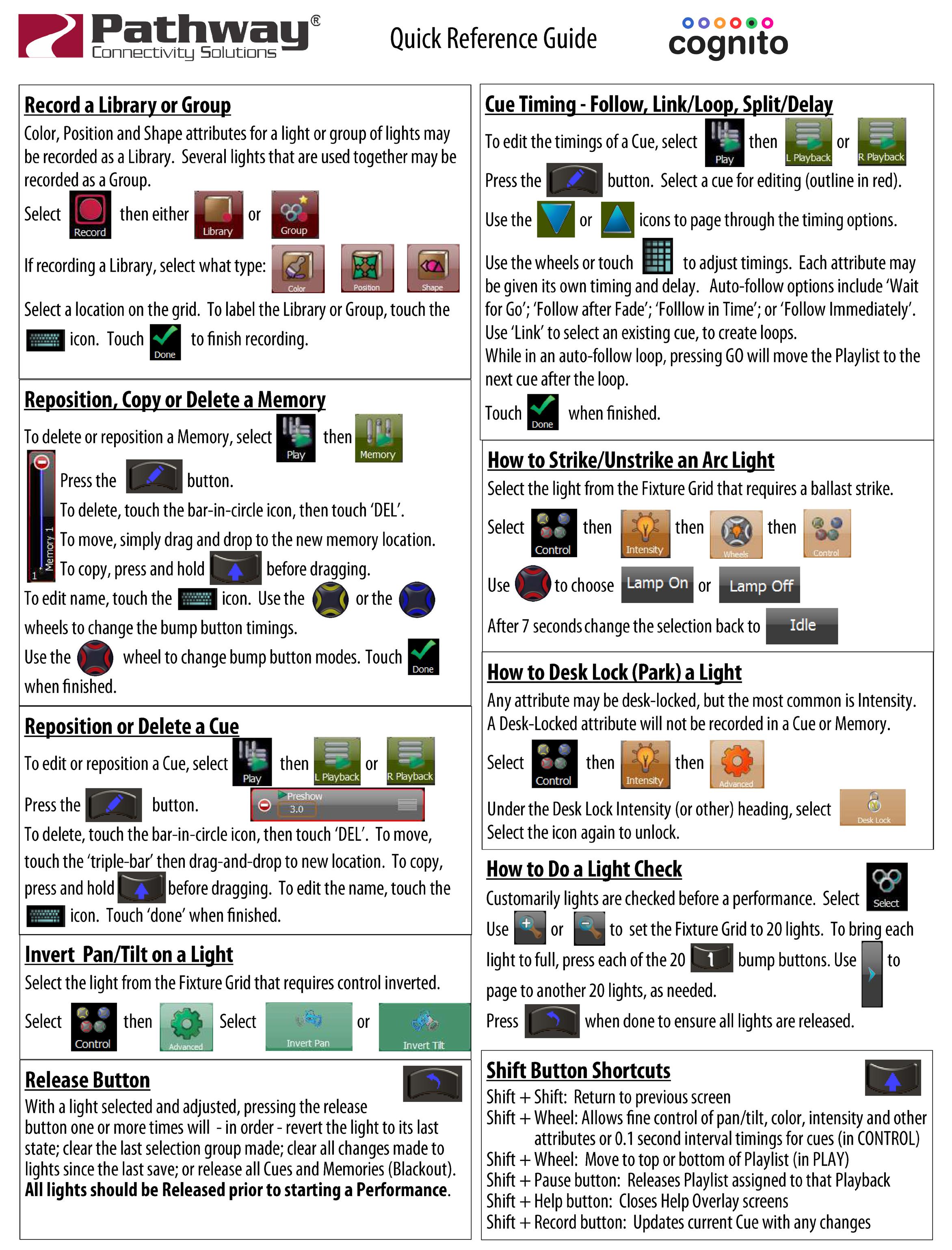 A full copy of the Cognito2 user guide for studio A and B lighting console is available at: https://tinyurl.com/FPACognito2guide