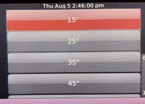 Tap the light gray box with the degrees in it to adjust the radius of the cast.