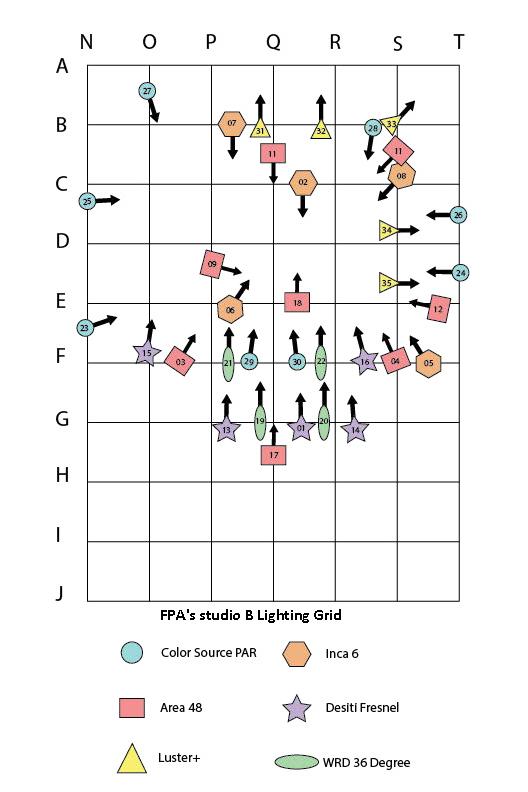 Studio B Lighting console presents (check console for latest info) – subject to change