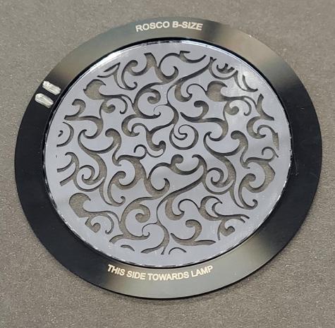 Gobos are like stencils for lighting fixtures, allowing light to shine through certain areas and project a pattern. The color of the projected image can be changed by adding a sheet of lighting gel. By sliding the lens forward or backward you can increase the clarity of the projected image.