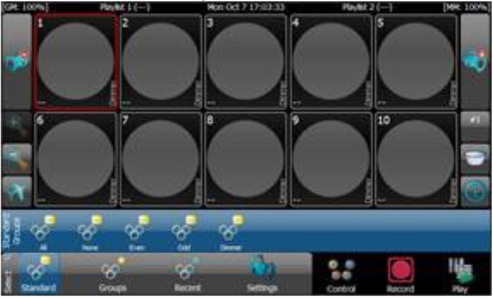 Basic operation is done through four (4) screens 1. Select screen - Select individual lights by pressing the corresponding cells 2. Control screen - Made available when pressing the Control button at the bottom of the - Made available when pressing the Control button at the bottom of the Touch Screen *control screen version depends on the properties you can adjust for the selected light