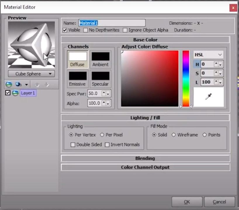 - Choose a color from the color picker for your new material