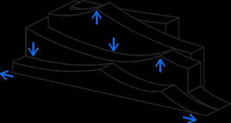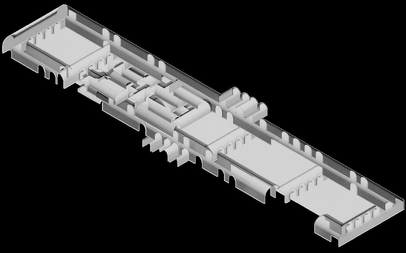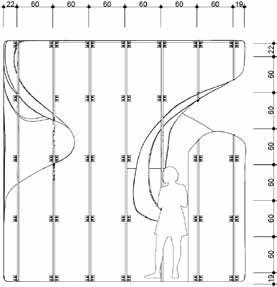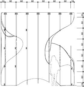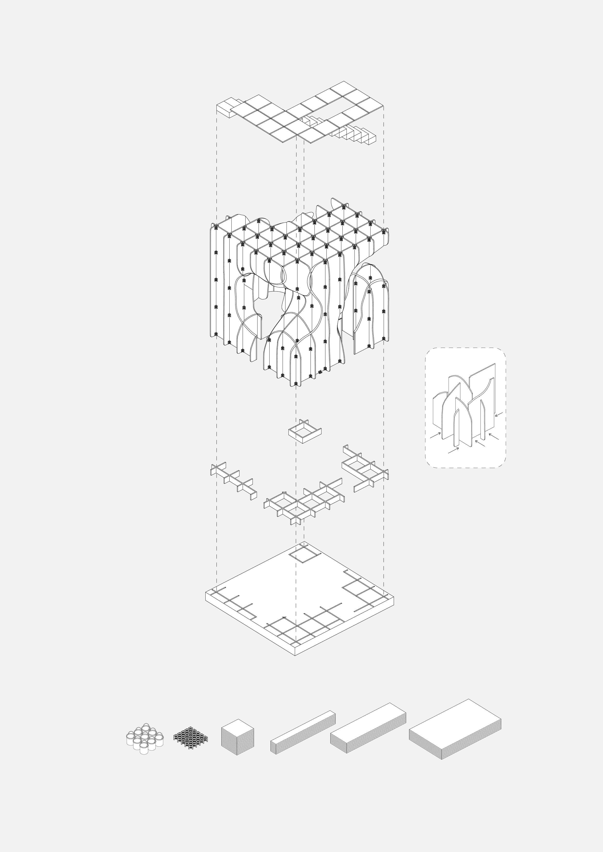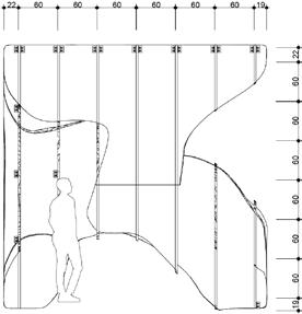 Composed of boards along the x-z and y-z planes, this model offers a 2D abstraction of the original form. Its distinctive approach to abstraction introduces various curvatures, inviting viewers to engage in spatial thinking.