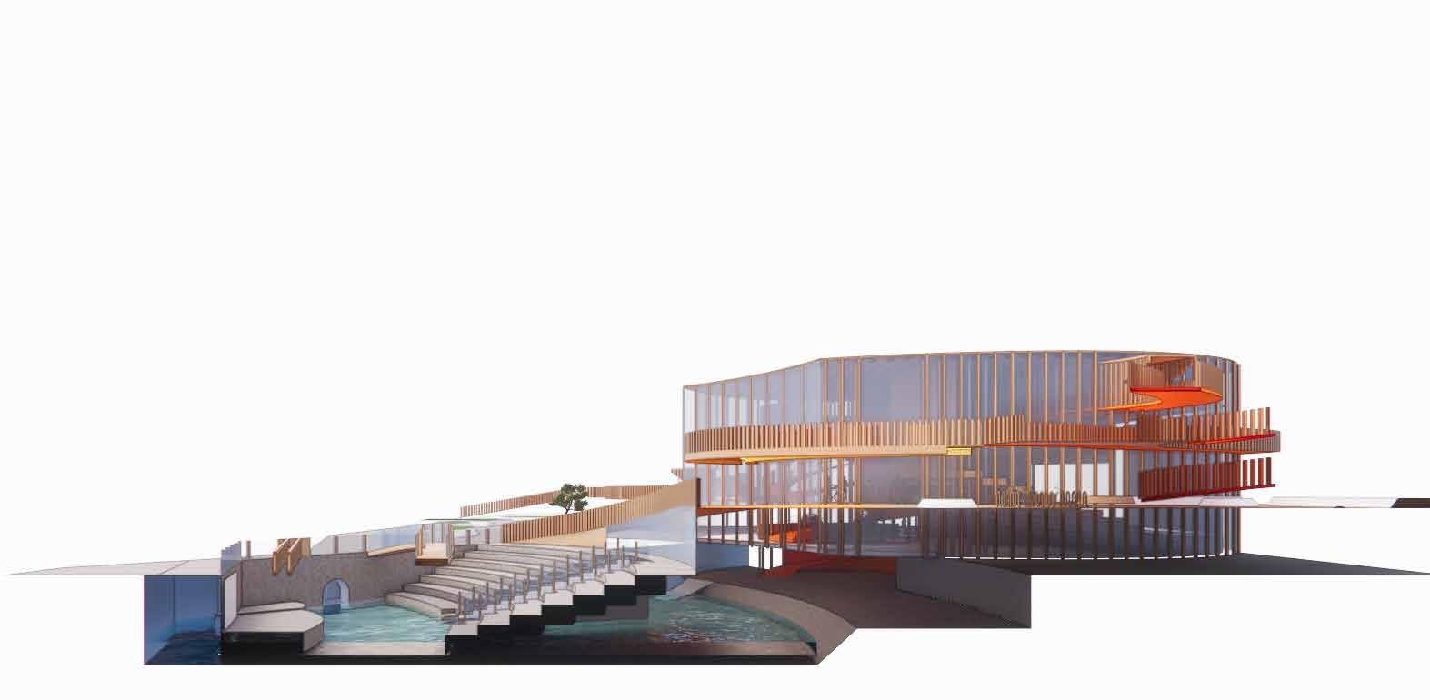 The Volume offers the visitors a dichotomous experience of the island and river. The essential quality is its organic shape that not only invite people to play, but also to experience the surrounding views.