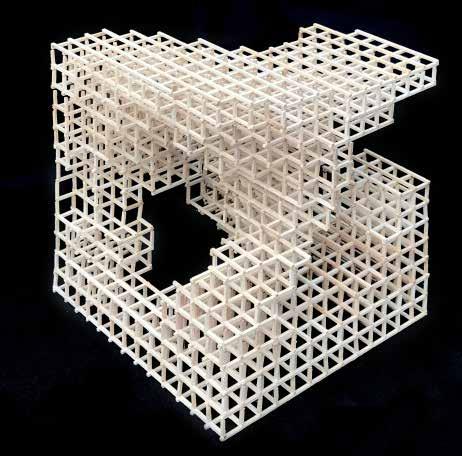 Assembled from over 1,000 individual sticks, this model offers a pixel-style interpretation of the original form. The natural material and its meticulous arrangement convey a distinctive quality, capturing the essence through its textured grid.