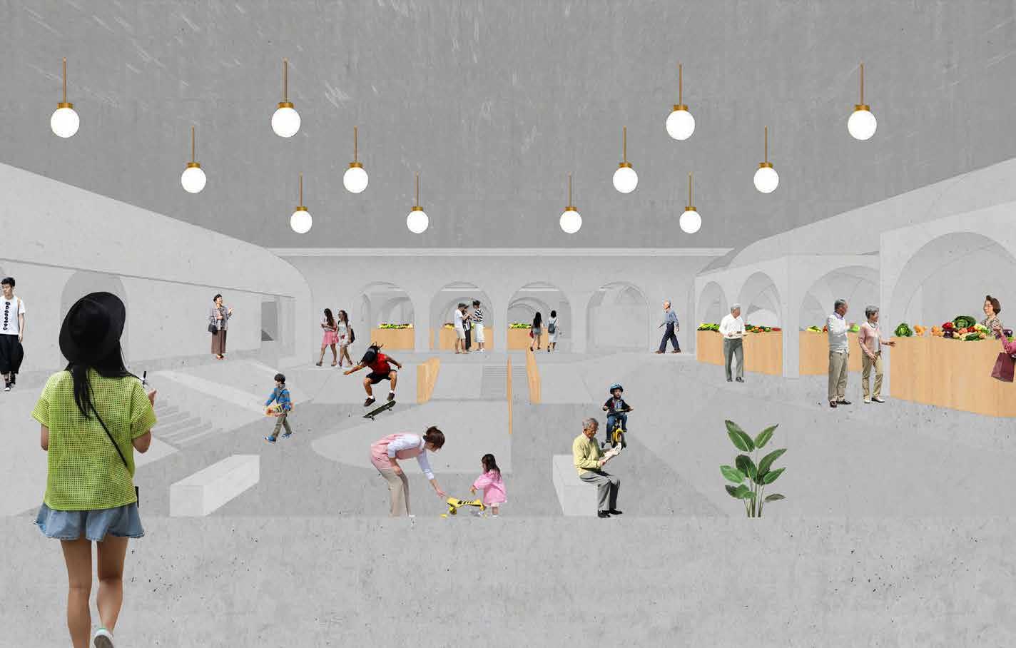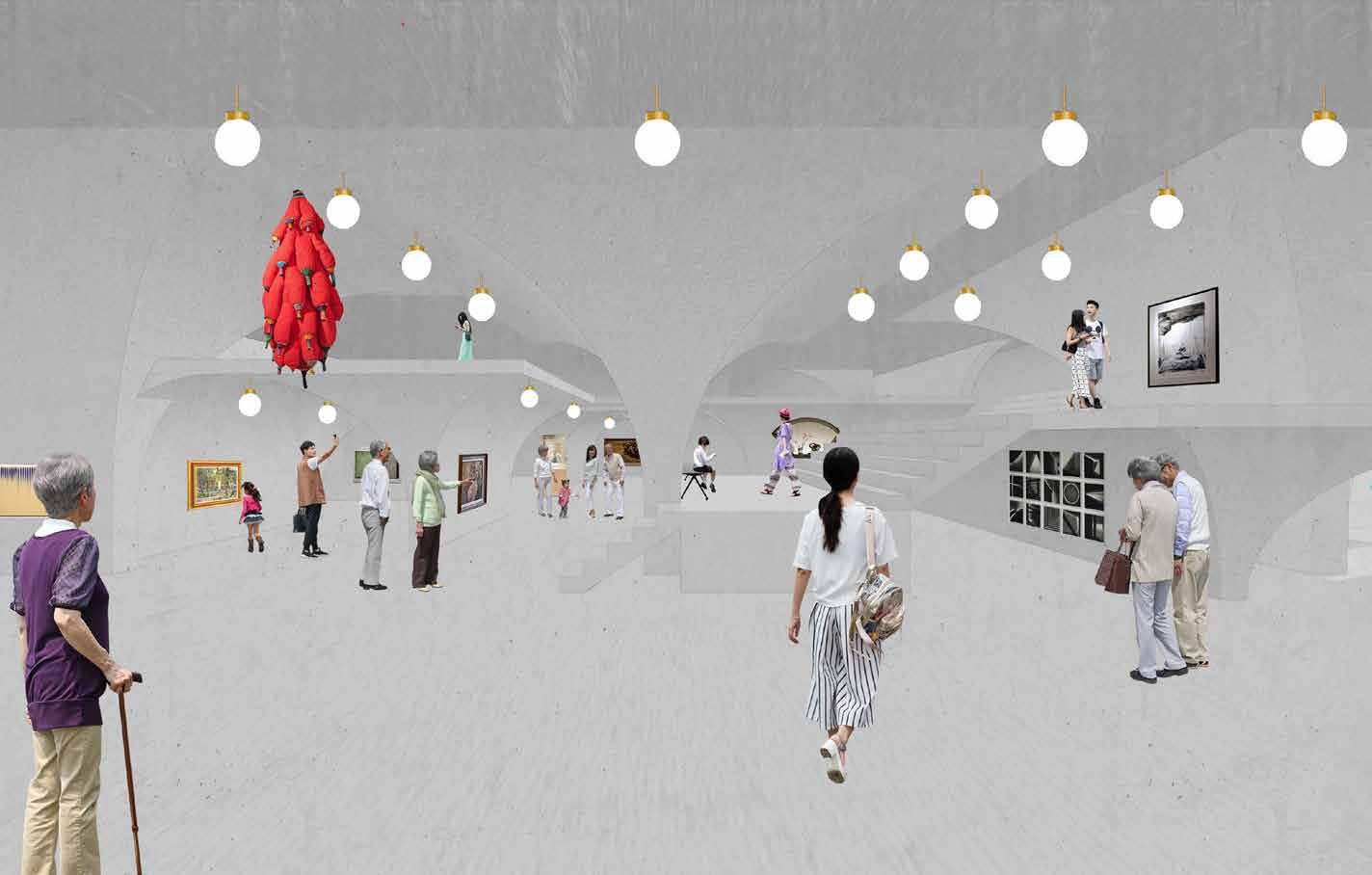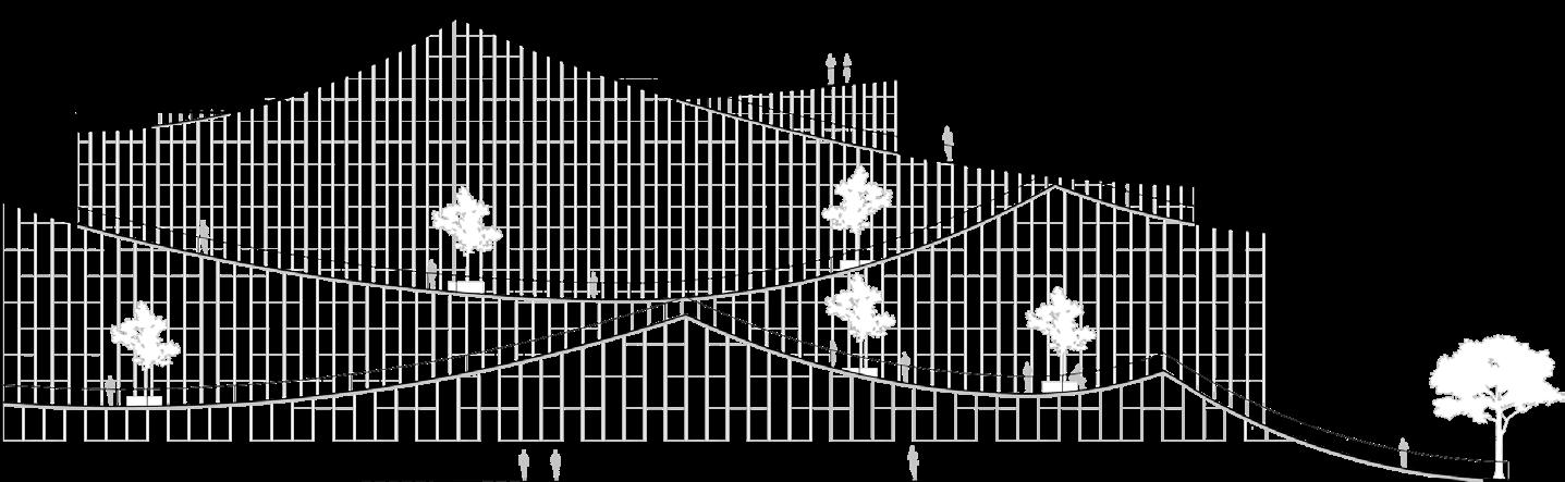 The idea of mountain as the dominant form originates from traditional Chinese paintings, the painting resembles the people’s natural intention of getting close to and embraced by nature. Through the process of bringing nature back to the city, the mountain is chosen as a form language to remind people about their inner desire.