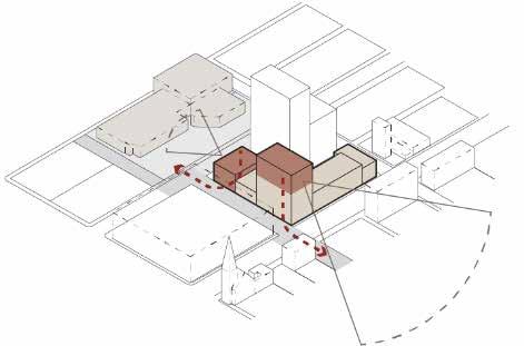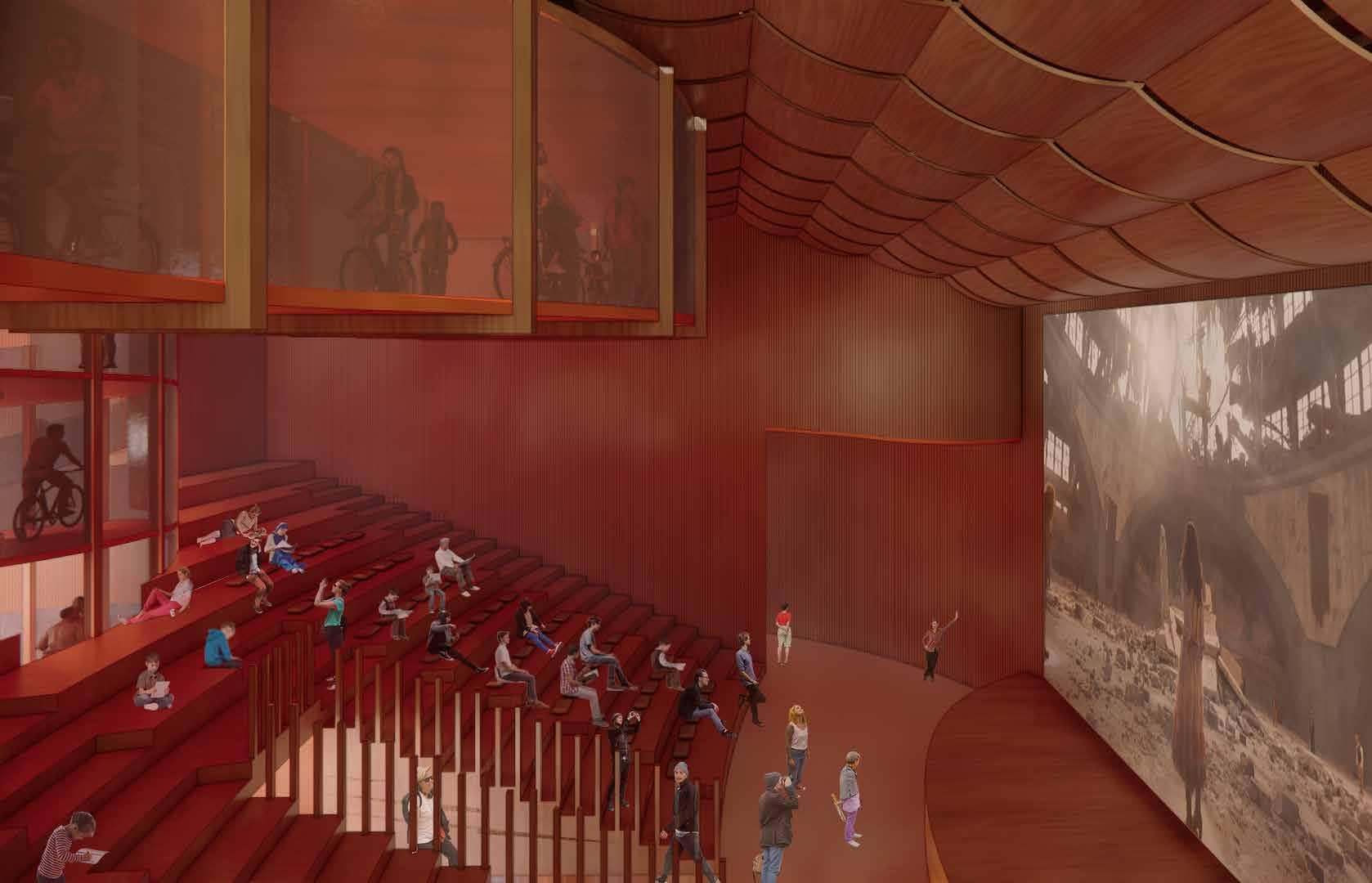 The vision for the site and cinema building is to create a more porous environment that encourages movement through it. Cyclists and pedestrians can engage directly with the site, traveling through its spaces. This increased interaction not only enhances the vibrancy of the area but also has the potential to boost cinema attendance.