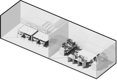 This line house is designed as a livable unit, with wood sticks maintaining the general outline of the foam massing while creating larger spatial opportunities. The orthogonal orientations enhance the usability of the interior spaces. Functional elements like stairs, shelves, and storage are thoughtfully integrated to optimize functionality. Overall, it creates an inviting environment where people can sit, relax, chat, and feel at home.