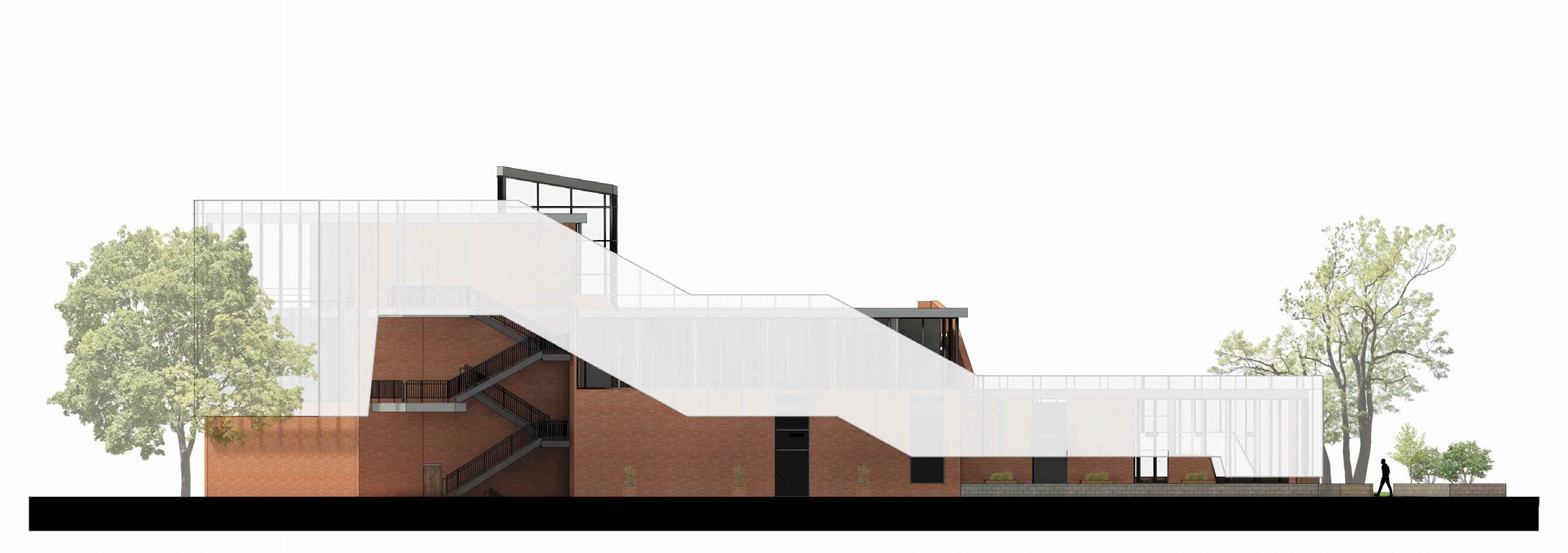 Corten steel was used to clad the building exterior for its durable characteristics, but also because of the story the material has gone through in that it has rusted and aged but now carries a