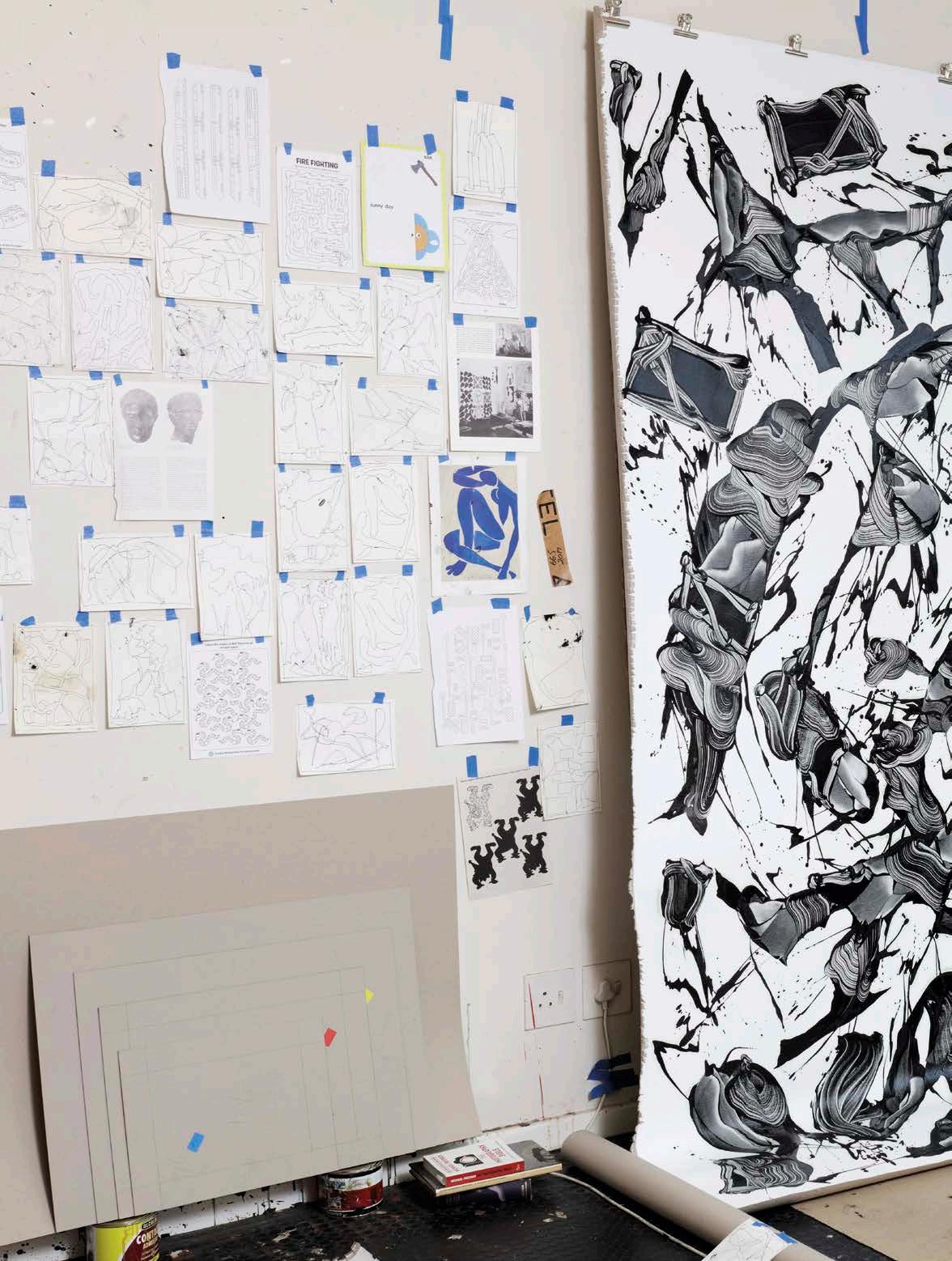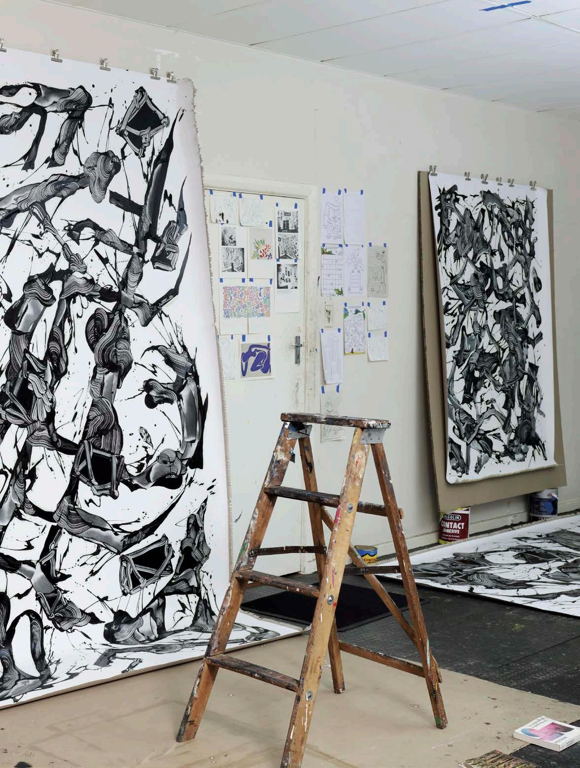 who makes mostly abstract paintings without any real conceptual or political agenda. There’s been a voice in the back of my head that kept saying, ‘This is not enough, you should be more.’ I’ve found all sorts of ways to justify why I’ve been drawn to abstraction. But I just don’t care anymore. I like to make marks on a surface and then respond with successive marks, in order to solve a composition. I don’t like going into something knowing the exact outcome. And I tend not to be satisfied with paintings that settle into recognisable forms. I also simply enjoy working in monochrome. These are aspects of my temperament that I’ve made peace with.