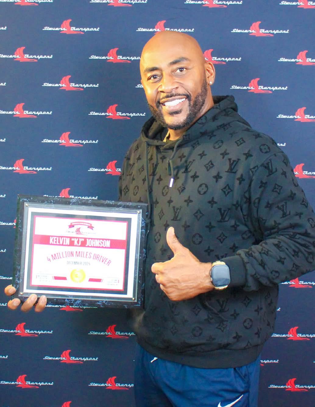 Please join us in congratulating Kelvin "KJ" Johnson, Independent Contractor, and his recognition of 4 Million Miles with Stevens Transport! KJ joined Stevens Transport in October 1997 after earning his CDL from Houston Community College. His journey to the transportation industry began with his father and brother, both professional drivers and influential people in his life. After a four-year career as a police officer, KJ decided to follow the footsteps and pursue a career in transportation. He attributes his success to hard work, continuous learning, and a commitment to professional growth. He encourages all drivers to take their time, thoroughly learn the business, and to be sure they are doing something they love. "If you’re not learning something new every day in this field, then you’re not advancing,” believes KJ. He has enjoyed witnessing the company’s growth over the almost 3 decades he has been with Stevens and most appreciates the respectful environment. Outside of work, Kelvin enjoys traveling, staying fit through regular exercise, and cherishing time with his family. Congratulations KJ!