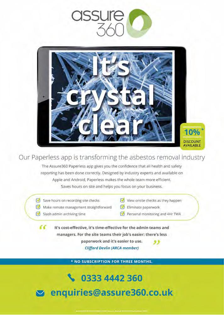 ARCA News is published by Asbestos Removal Contractors Association Limited. Reproduction in part or whole of any item may only be undertaken with the prior written agreement of the Editor or ARCA. Opinions, comments, reviews and articles included in ARCA News are not necessarily those of the Association and no warranty for goods and services described or advertised is implied. Contributions are included in part or in whole at the sole discretion of the Association.