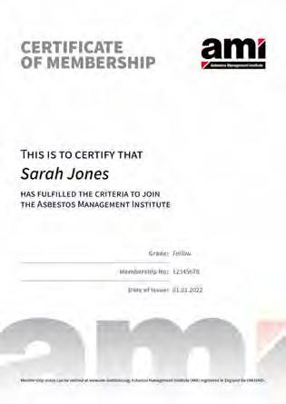 Finally, I would like to inform you that the 1st Asbestos Management Institute (AMI) Annual General Meeting (AGM) will be held on the 6th April 2023. We have a range of presentations lined up from speakers from The Institute of Demolition Engineers (IDE), Mesothelioma UK, and two speakers from the Health and Safety Executive (HSE). The meeting will be held via Zoom video conferencing, and is free for anyone to attend, you just need to register on the AMI website at www.am-institute.org.