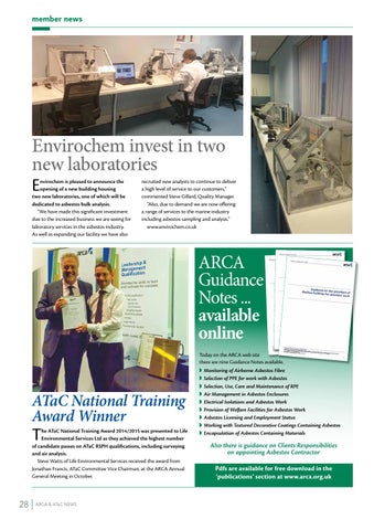 recruited new analysts to continue to deliver a high level of service to our customers,” commented Steve Gillard, Quality Manager. “Also, due to demand we are now offering a range of services to the marine industry including asbestos sampling and analysis.” www.envirochem.co.uk
