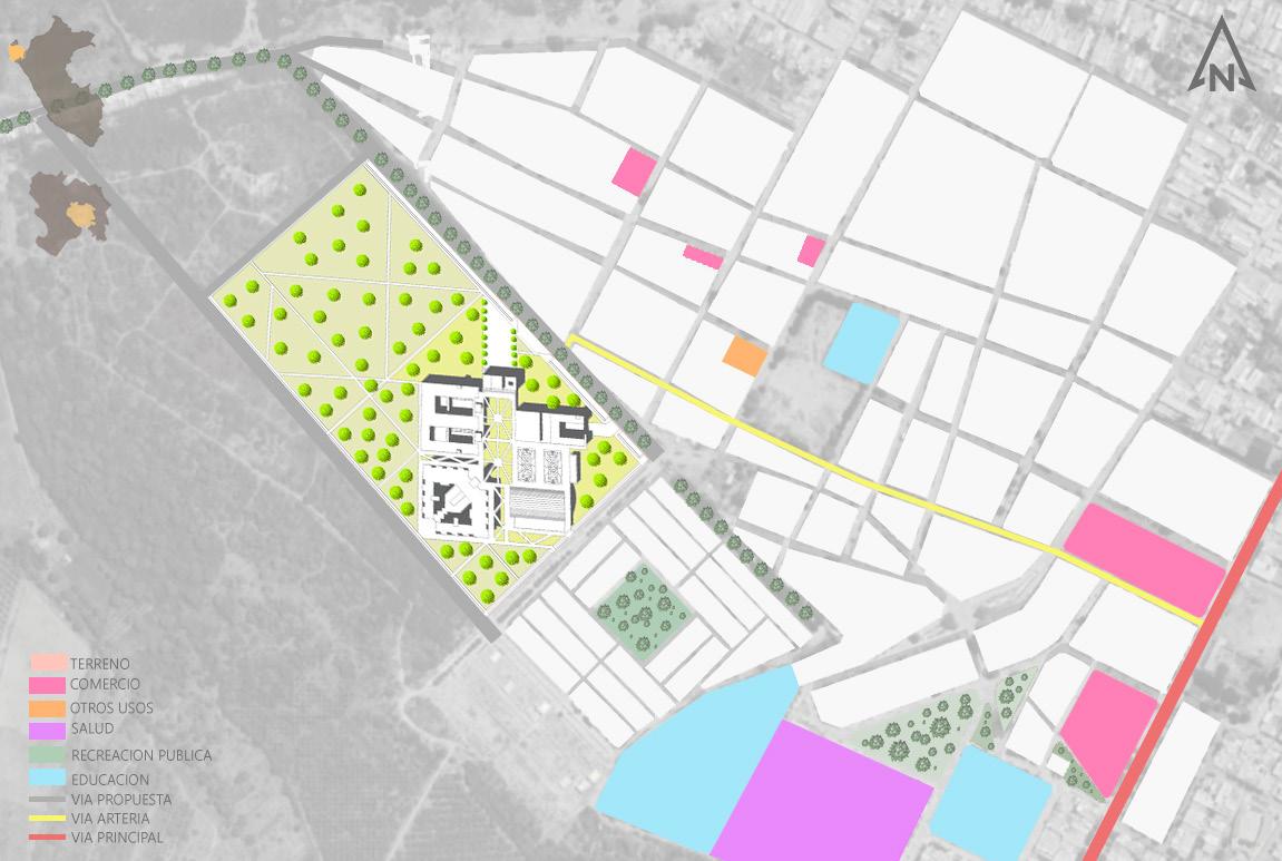 It is collected from the urban development plan already carried out, taking into account the roads and translating them into the proposed land according to the conditions, with the objective of inserting it and relating it to the environment, creating new spaces for the common good, the project is implanted on the land, integrating it with the most outstanding routes with the new routes that are developed in our project
