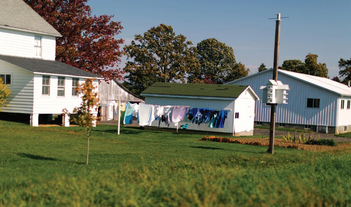 The Amish live on farms without the convenience of electricity. Many Amish homes include additions or small detached dwellings called “dawdy” houses, where grandparents live.