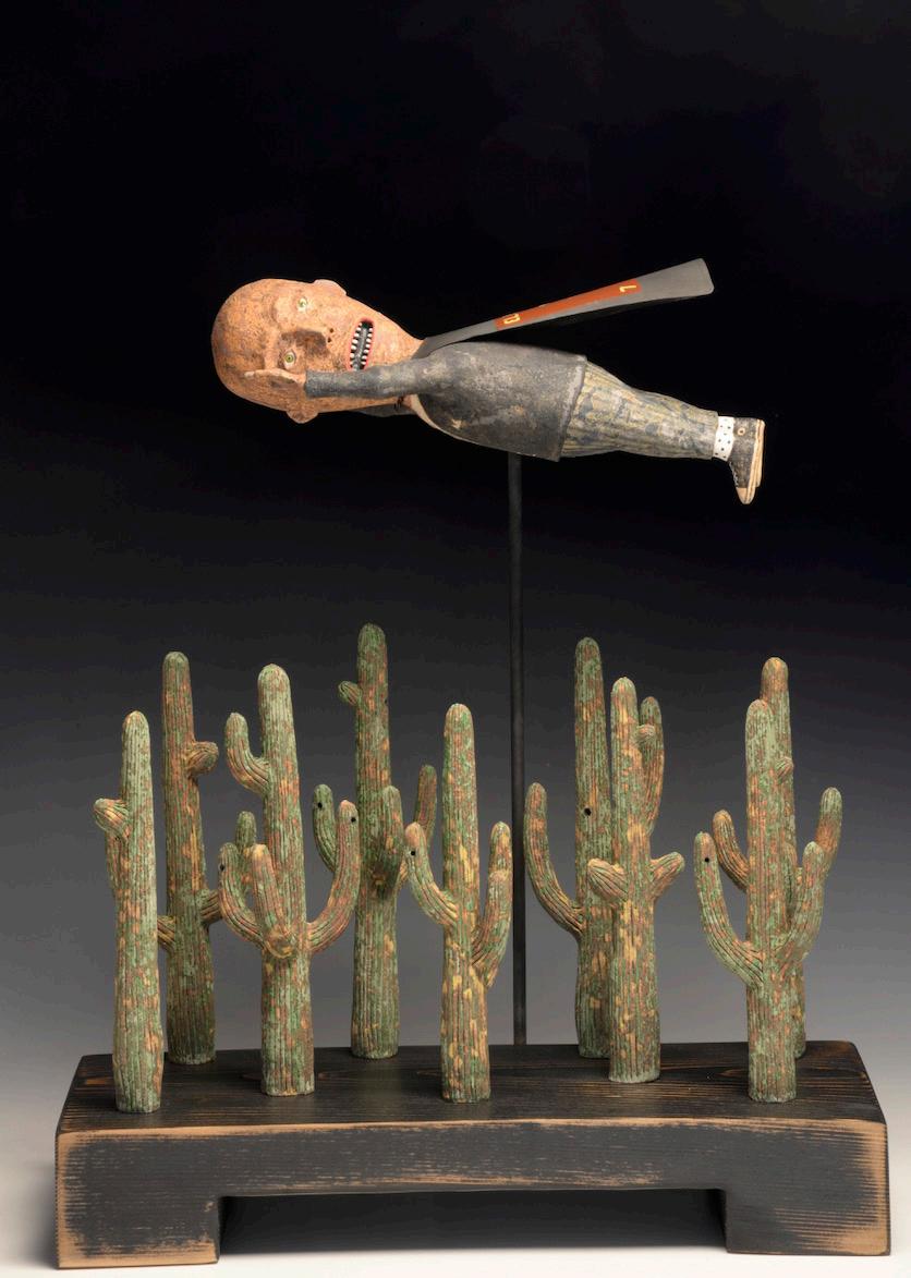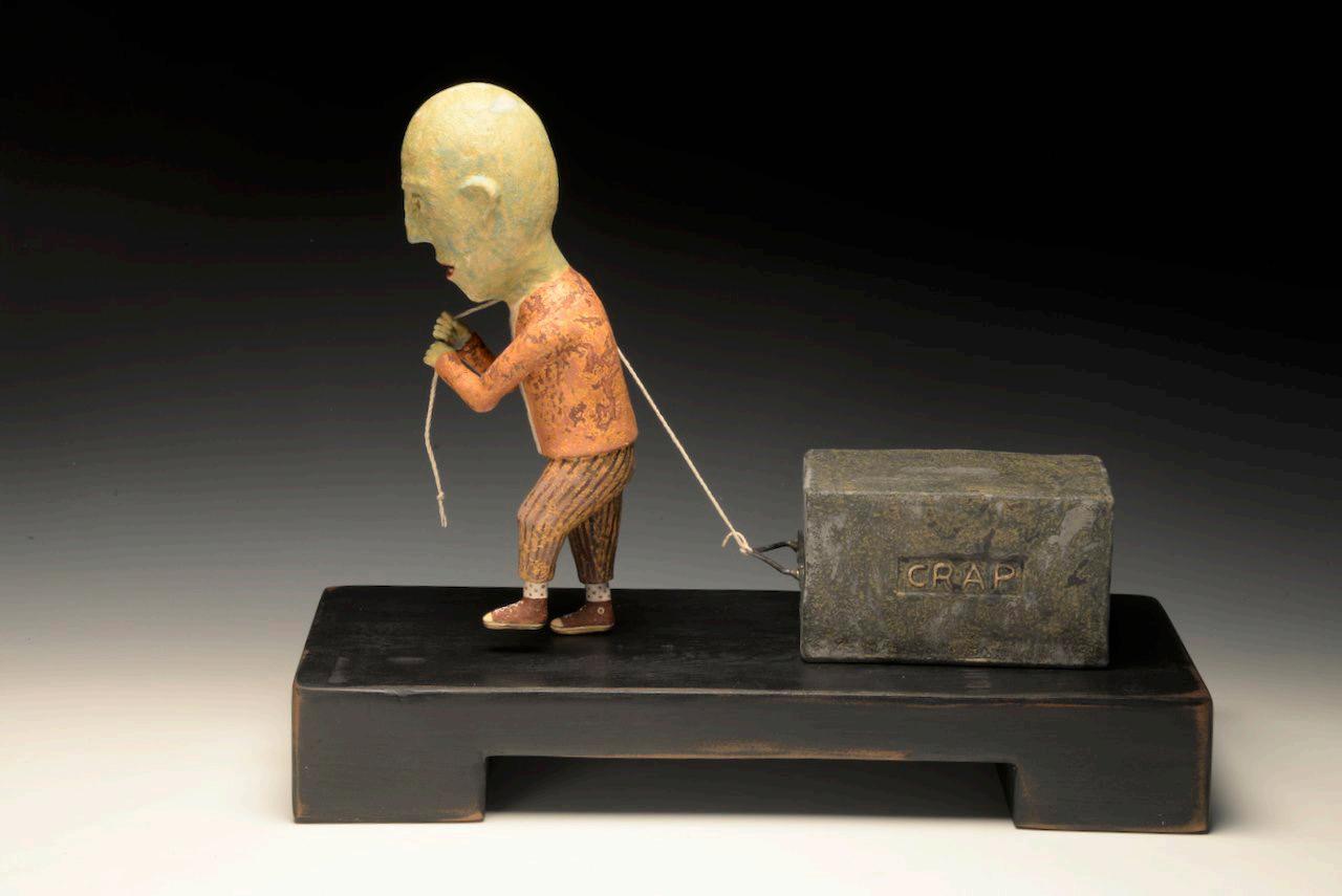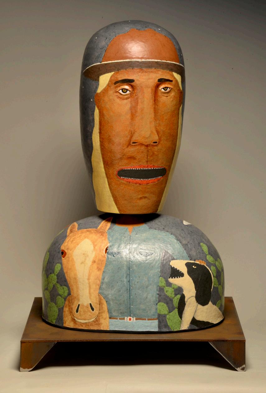 Anderegg approaches his work from the perspective of the primitive sculpture artists, fashioning the world he knows and how he sees it. As an avid people watcher, Wesley has created a full and ceramic figurative world, combining dark humor and light spirits.