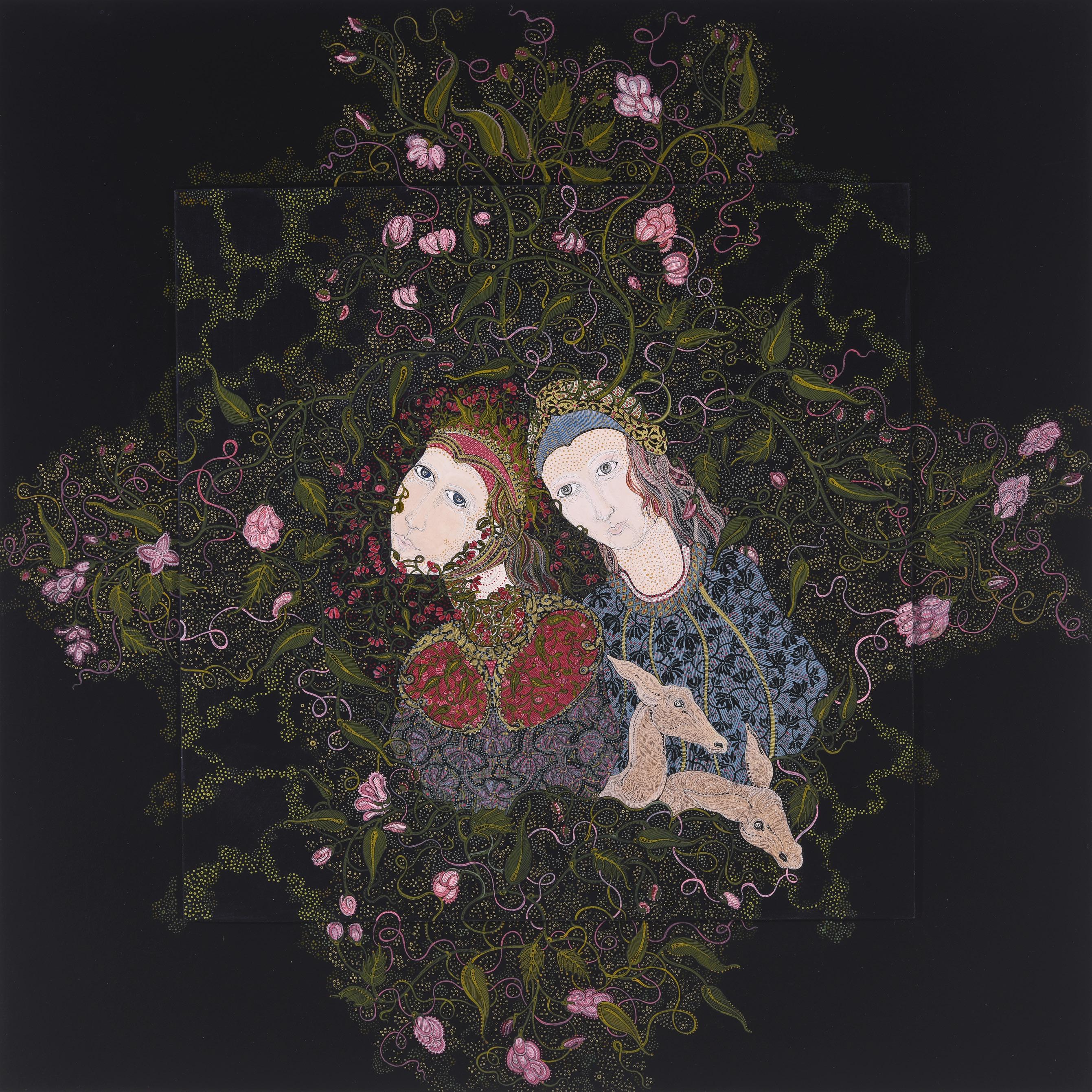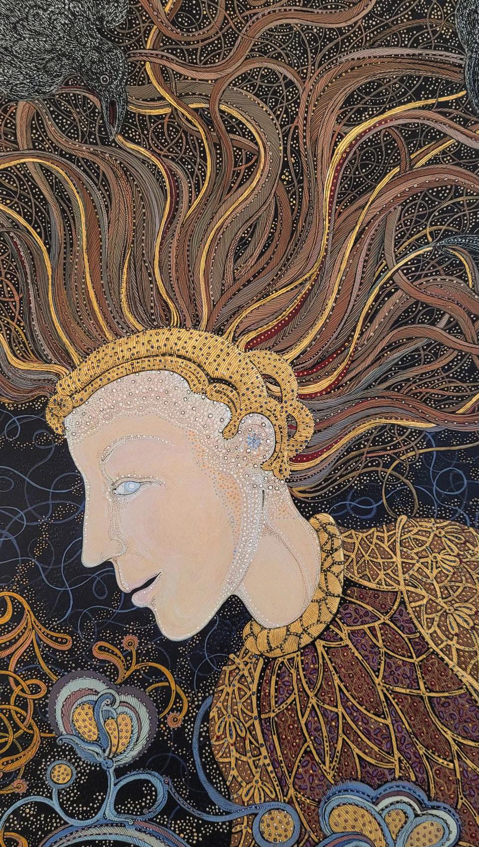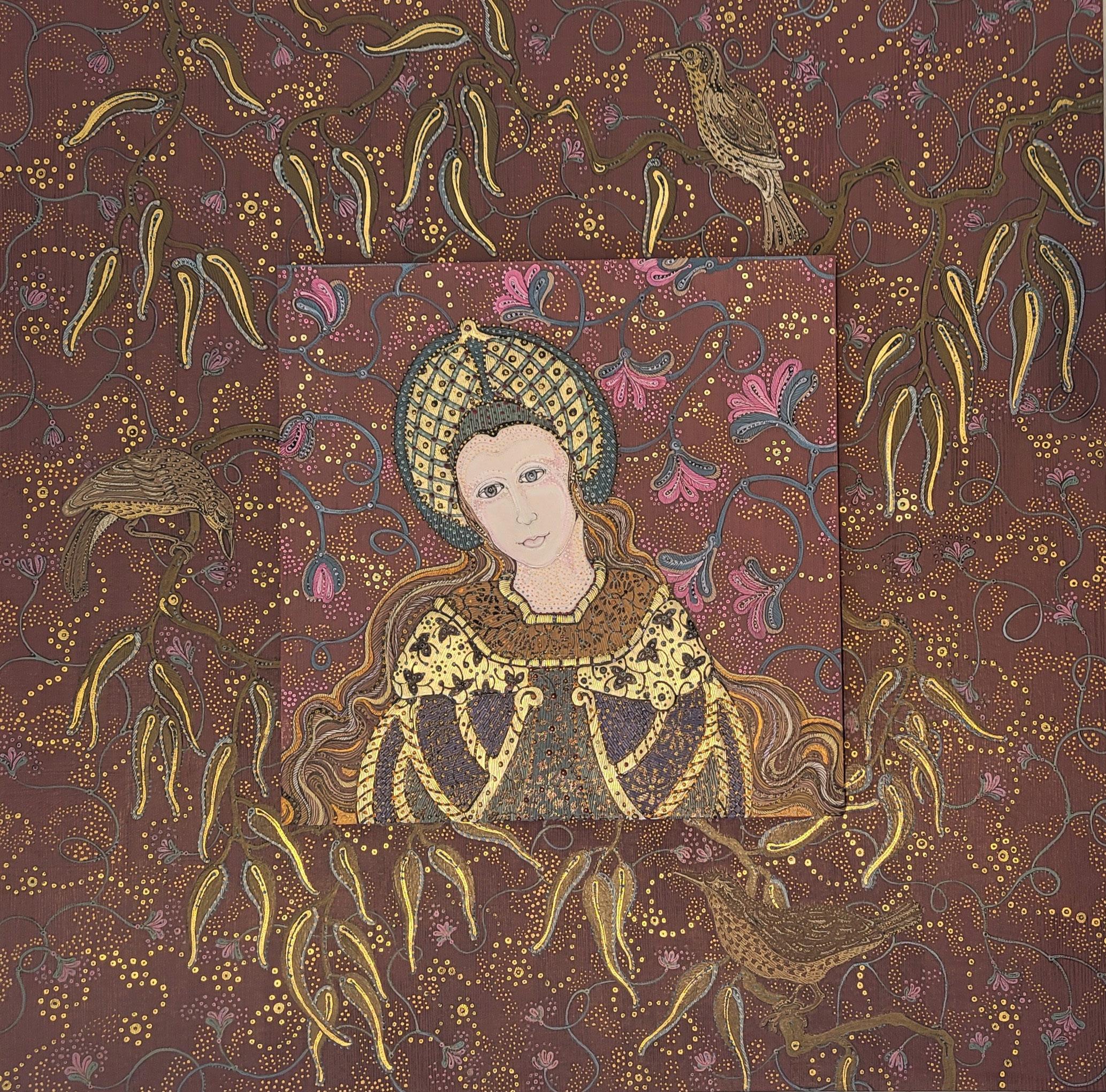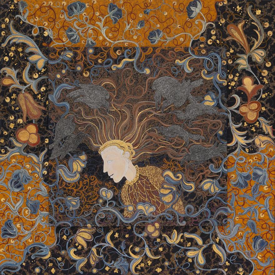 decades, Stephanie Wilde has created works of art that tell stories of our shared humanity, individual dignity, and imperiled environment. In creating series on such themes, Wilde is a seeker of rarefied moments in which the visual arts transfigure facts, figures, and political rhetoric, making of them universal statements that appeal to the senses, emotion, and approach to each project is methodical, starting with research supported by scientific, historical and literary sources, relying on symbolism and historical context to inform a complex narrative. Wilde’s technique, incorporates ink, acrylic, gold leaf in a combination of both painting and drawing.