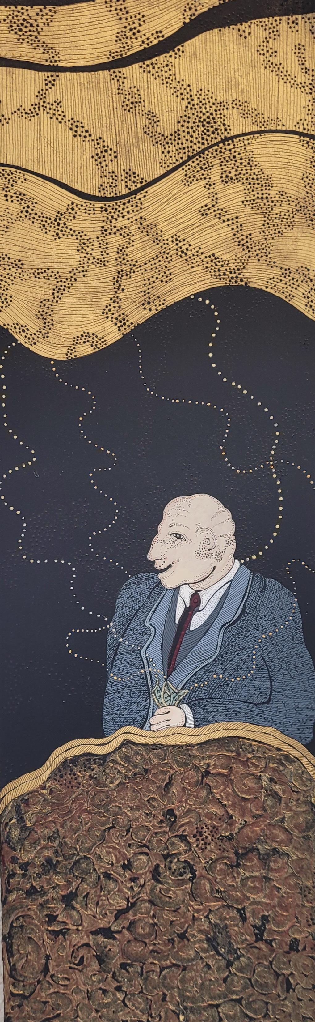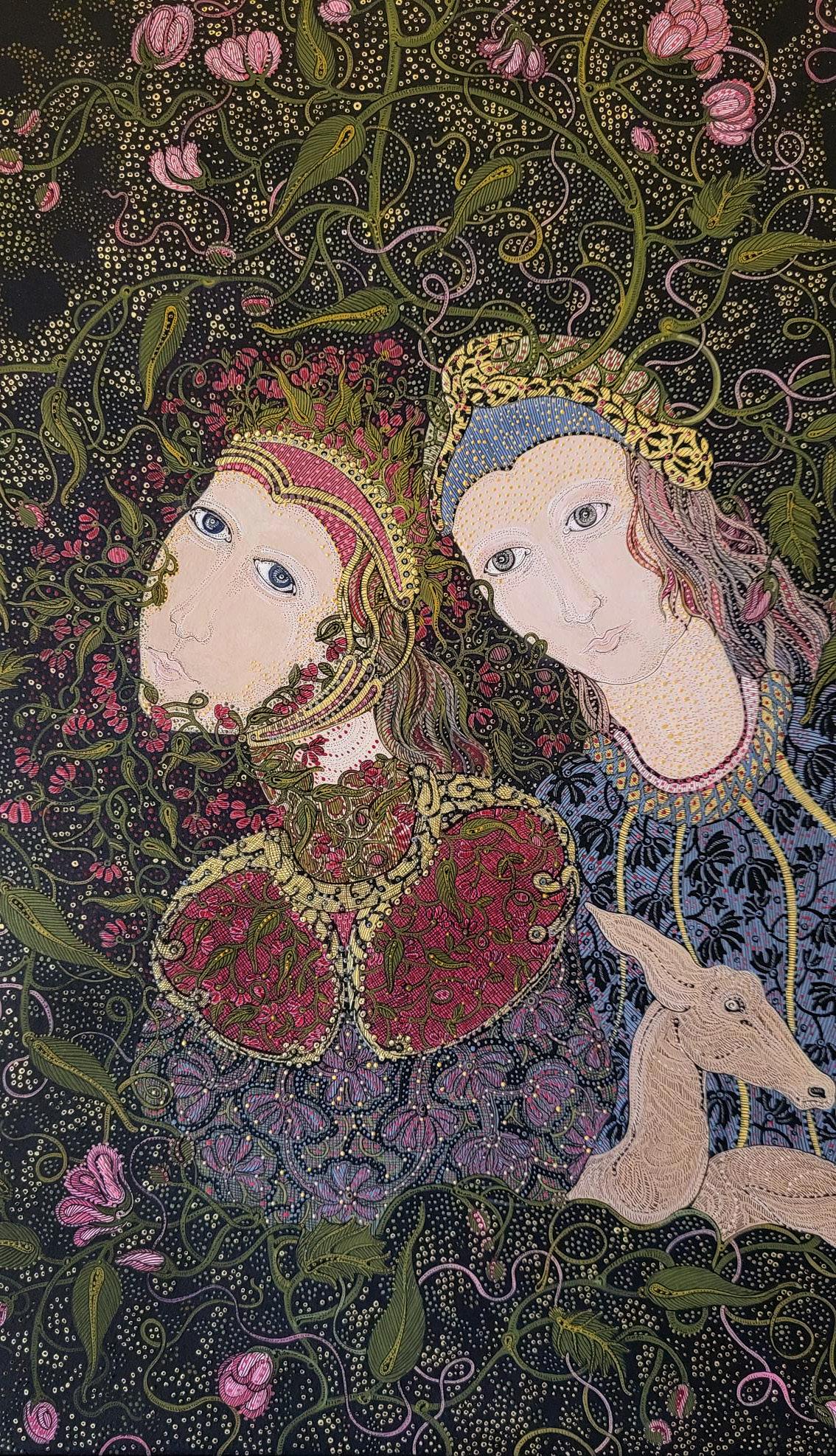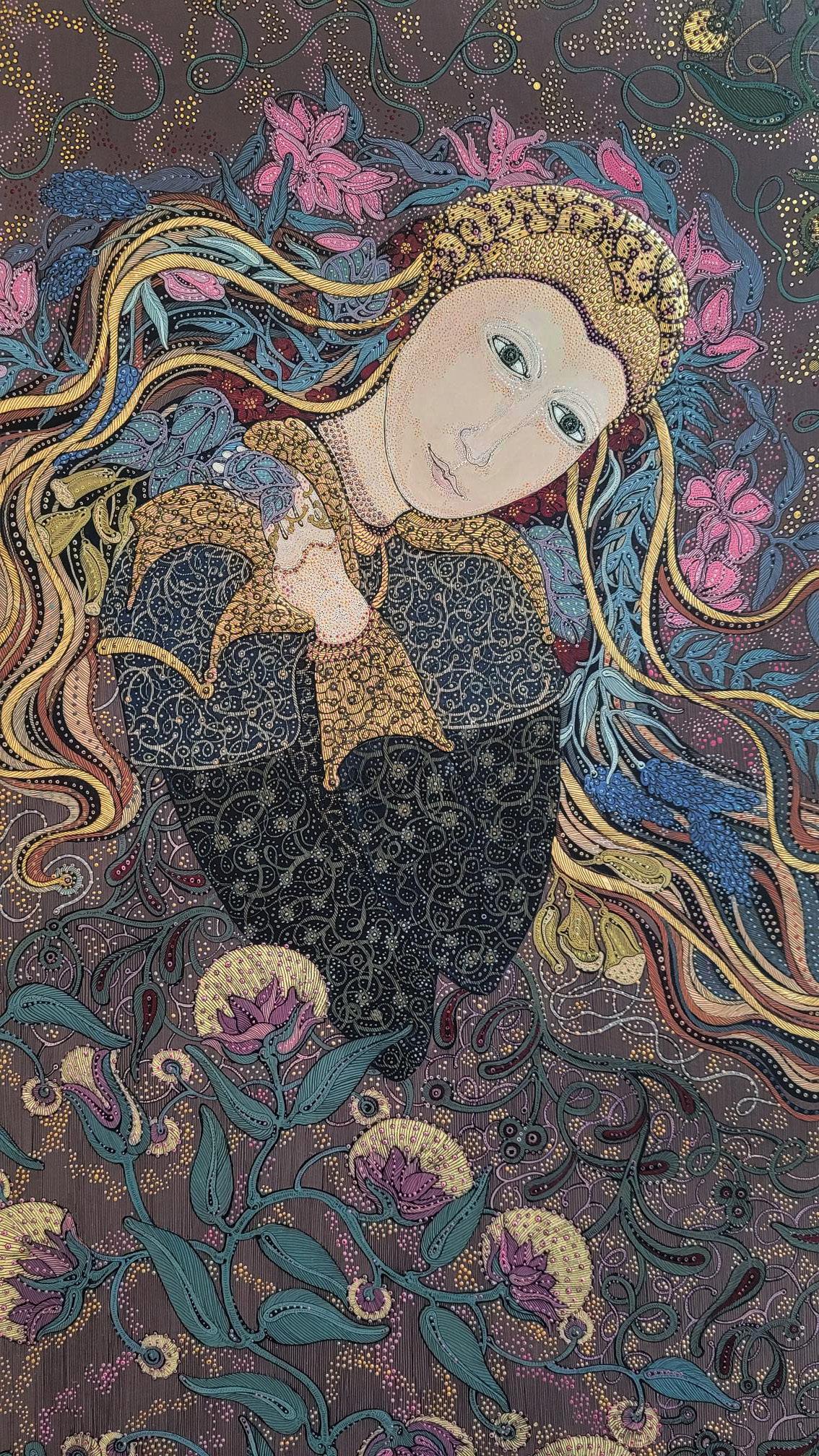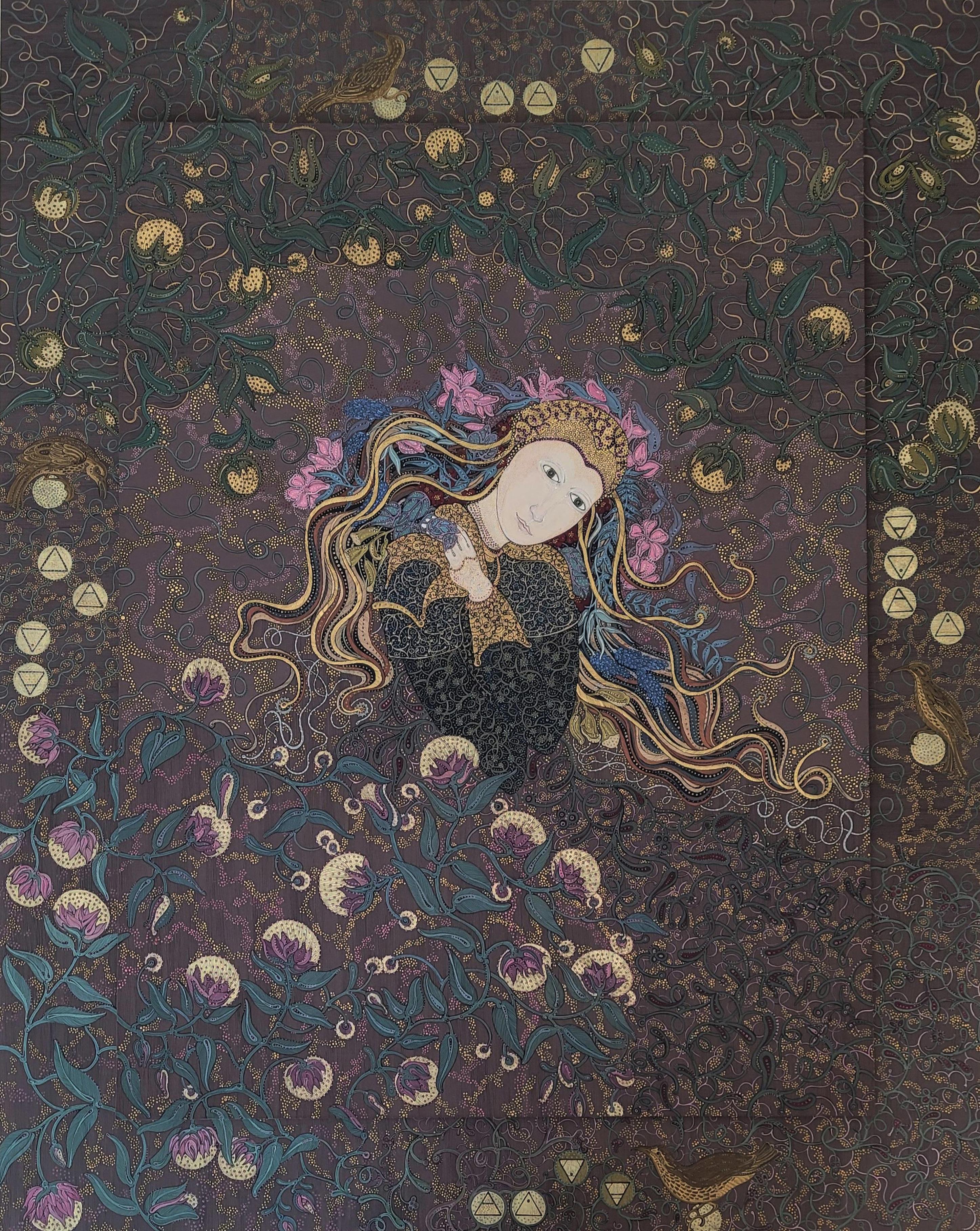 decades, Stephanie Wilde has created works of art that tell stories of our shared humanity, individual dignity, and imperiled environment. In creating series on such themes, Wilde is a seeker of rarefied moments in which the visual arts transfigure facts, figures, and political rhetoric, making of them universal statements that appeal to the senses, emotion, and approach to each project is methodical, starting with research supported by scientific, historical and literary sources, relying on symbolism and historical context to inform a complex narrative. Wilde’s technique, incorporates ink, acrylic, gold leaf in a combination of both painting and drawing.