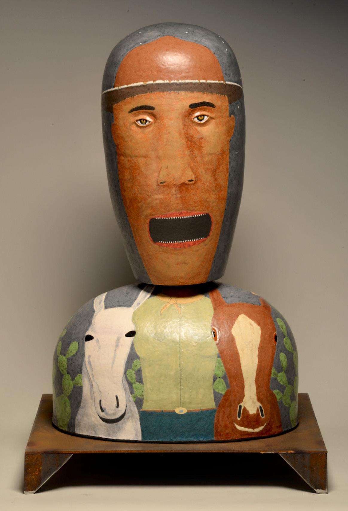 exhibition history is impressive by almost any standard. He has had over 22 solo exhibitions, and participated countless group exhibitions and art fairs all across the United States. In addition, his work has been featured in Lark highly successful catalogue series three times – “500 Ceramic Sculptures”, “500 Clay Figures” and “ The Best of 500 Ceramics”. His work has also been featured in “Confrontational Ceramics: The Artist as Social Critic” by Judith Schwartz, Potters Handbook” by Glenn Nelson and Richard Burkett, and “Hand built Ceramics” from Lark Books. His work has also in “Ceramics Monthly” and “American Craft.”
