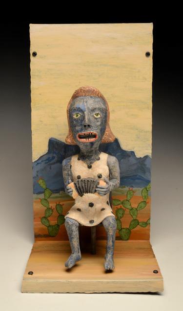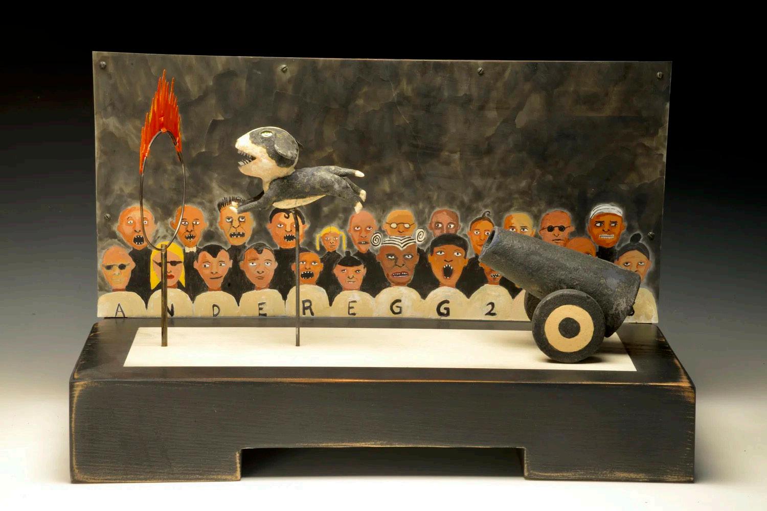 Wesley Anderegg approaches his work from the perspective of the primitive sculpture artists, fashioning objects about he knows and how he sees it. As an avid people watcher, Wesley has created a full and complex ceramic figurative combining dark humor and light spirits.