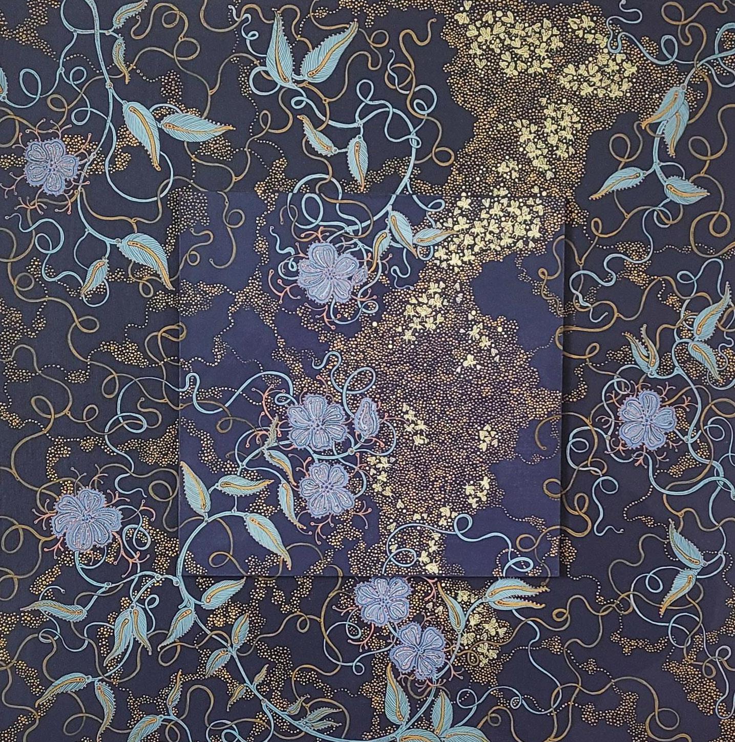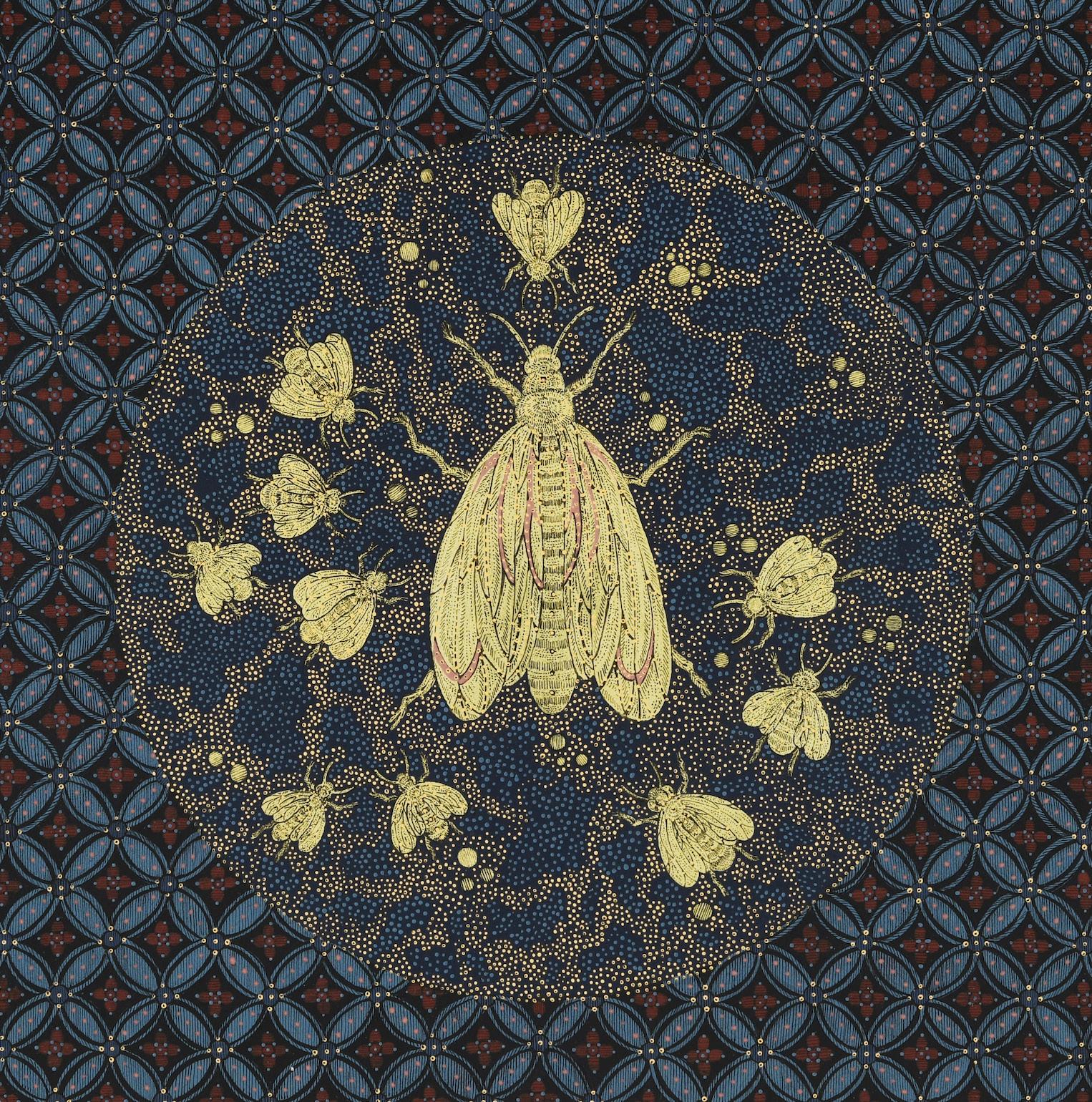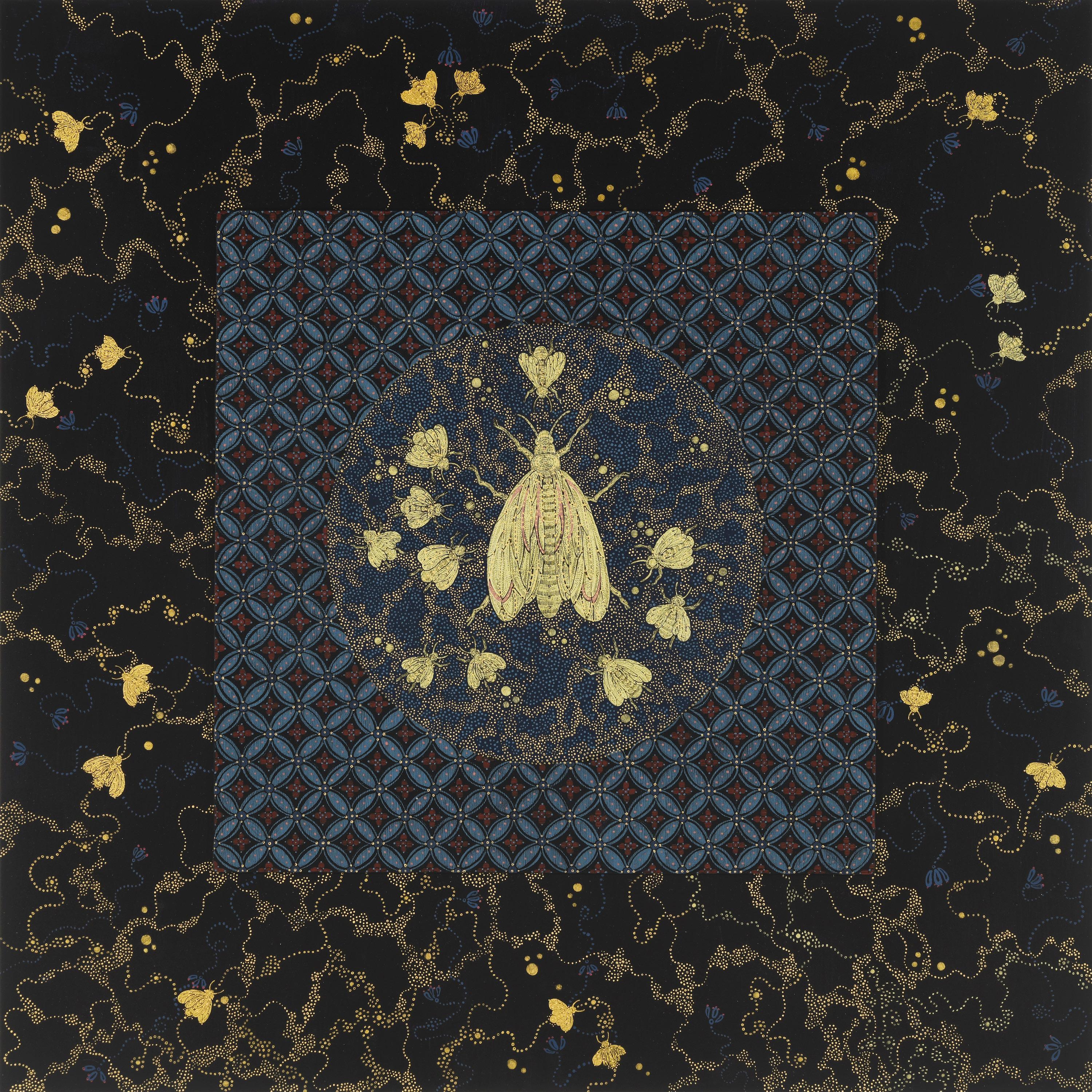 Moving the Colony 12” x 12” Ink, acrylic and gold leaf