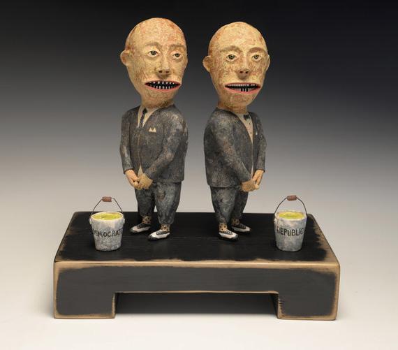 Politically Correct 14” x 14” x 8” hand built ceramic wood base
