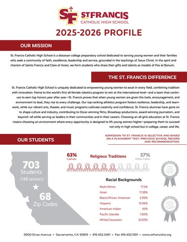 A Catholic, diocesan college preparatory school for young women grades 9 through 12. Our enrollment of over 1100 students makes St. Francis the largest all-girls high school on the West Coast!