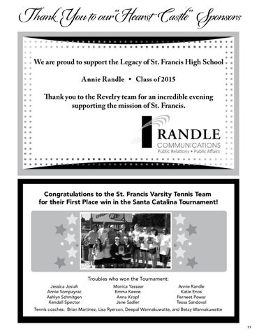 Thank You to our H “ earst Castle ” Sponsors We are proud to support the Legacy of St. Francis High School Annie Randle • Class of 2015 Thank you to the Revelry team for an incredible evening supporting the mission of St. Francis.