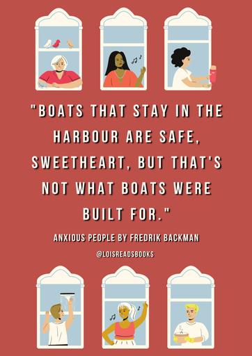 -----Anxious People is very much a characterdriven story; the plot is formed around the characters rather than vice versa. Every person in the story has more to them than you’d expect, which is exactly what happens in real life. They all have their own stories within the larger context of the novel, filled with hopes and dreams and fears None of the characters go to the apartment viewing expecting to be held hostage, but it happens anyway. None of them expect to open up to each other and discover how intertwined their lives are, but life is funny that way.
