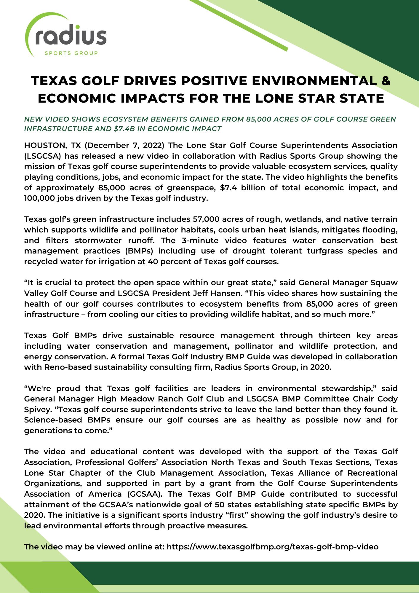 The Sonny DuBose Memorial Distinguished Service Award is an annual award presented to a member who has shown outstanding service and prolonged dedication to the success of the South Texas GCSA, Inc. It is named after one of the Association’s founding fathers and 3-time President. Click Here to read Brent’s nomination letter