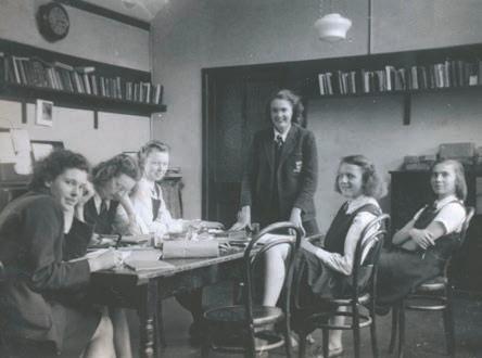 One of the big advantages of war time was the arrival of Rosemary Irvine to teach us history. I was so exhilarated by her teaching that I eventually had a place at Margaret Hall, Oxford, to read history. Miss Irvine had wanted to join the WRENS after Oxford, but was told she had to go and teach. We soon found out that the other members of staff called her ‘Baby Bomb’ and we followed suit. My other memories are mostly about food. For example, I can still see Miss Loveday, ‘Bird’ as we called her, telling us we should have eaten all the gristle on the meat as people in Europe were starving. My comment to my neighbours was, “let them have it!” My sister Rosemary’s memories seem more relevant than mine.