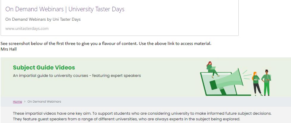 If you’ve already registered to watch the programme – thank you – but please do share this information so that as many Year 12 students and their parents are are able to watch too: