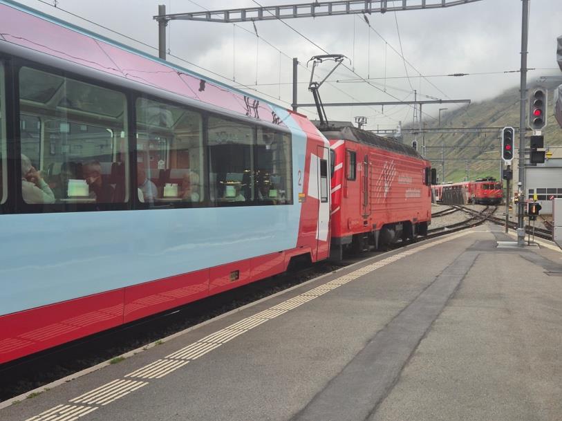 As some of you will know I have always had an interest in railways; fewer will be aware that my father was the last in line of Chief Civil Engineers on what was the Western Region of British Rail, the famous Victorian engineer Isambard Kingdom Brunel being the first Switzerland is of course renowned for the efficiency of its railways and has some impressive engineering in the Alps as well. We were able to experience this on an organised tour which included a day on the Bernina Express, taking us from Chur into the Italian-speaking part of the country, and then also part of the route of the Glacier Express, from Chur to Brig, the gateway to the Simplon Pass From there the trip moved on to near Zermatt, where the line quickly climbs over a thousand metres, the train effortlessly switching to the rack and pinion method of traction where cogs are engaged to enable adhesion on the very steep inclines