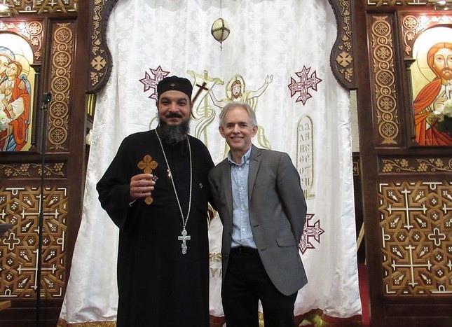 My first stop was the former Burnbank Parish Church in Hamilton, now the Coptic Orthodox Church of St. Mary and St. Michael. Elizabeth Cumming told me that the church had a mural by Jessie MacGibbon, and I was determined to see it Father Alisha, pastor of the Coptic congregation, arranged for me to visit on a Sunday morning This, however, proved to be unexpectedly challenging. The taxi-driver I called took me by mistake to the Roman Catholic Church of St. Mary. For an American tourist to convince a Glaswegian cab-driver that he has gone to the wrong place, and that one “Church of St Mary” is not interchangeable with another, is no easy business Nevertheless I eventually reached the church, was welcomed warmly, and viewed the mural (painted in 1907). A depiction of St. Paul after his shipwreck (Acts 27:35), it was strikingly original - a true masterpiece!