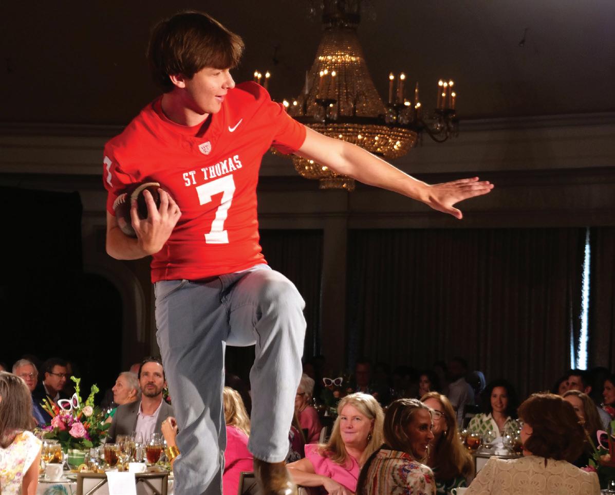 Decorated in shades of pink and sunset hues, the River Oaks Country Club ballroom and event space was primed for the annual St. Thomas Style Show and Luncheon on April 25th. The 2025 theme of this beloved event was Eagle Royale –An Afternoon at the Country Club, which inspired the colorful décor and the cheerful outfits from Dillard’s that the moms rocked down the runway.