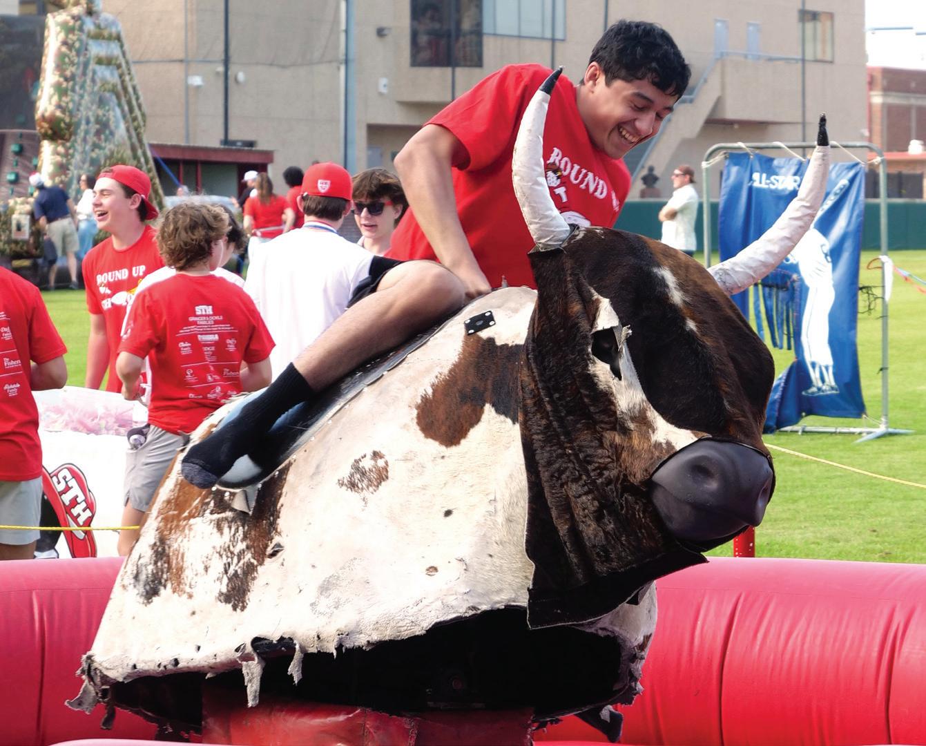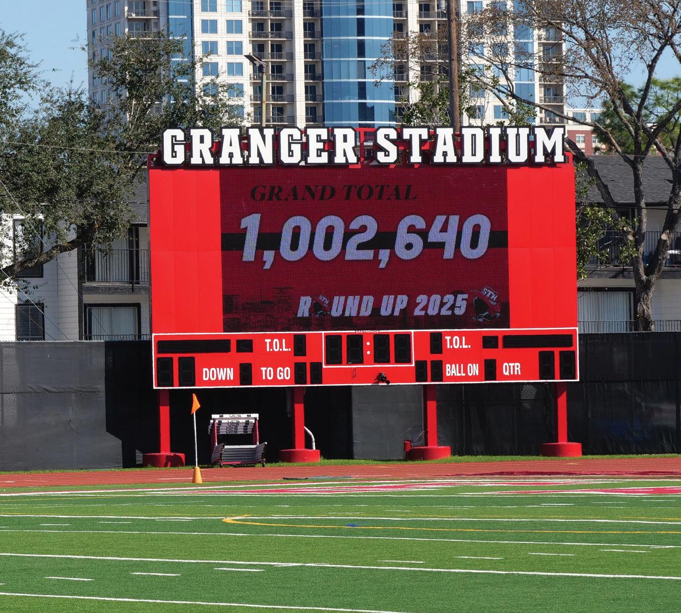St. Thomas students, faculty, and staff enjoyed the culminating Round Up Reveal on February 28, where Tom Eagle and Toro of the Houston Texans entertained the student body with their mascot antics and the whole school reveled in the success of Round Up. At the moment the million-dollar total displayed on the Granger Stadium screen, the entire stadium erupted with cheers as they celebrated the hard work they had put into this staggering achievement.