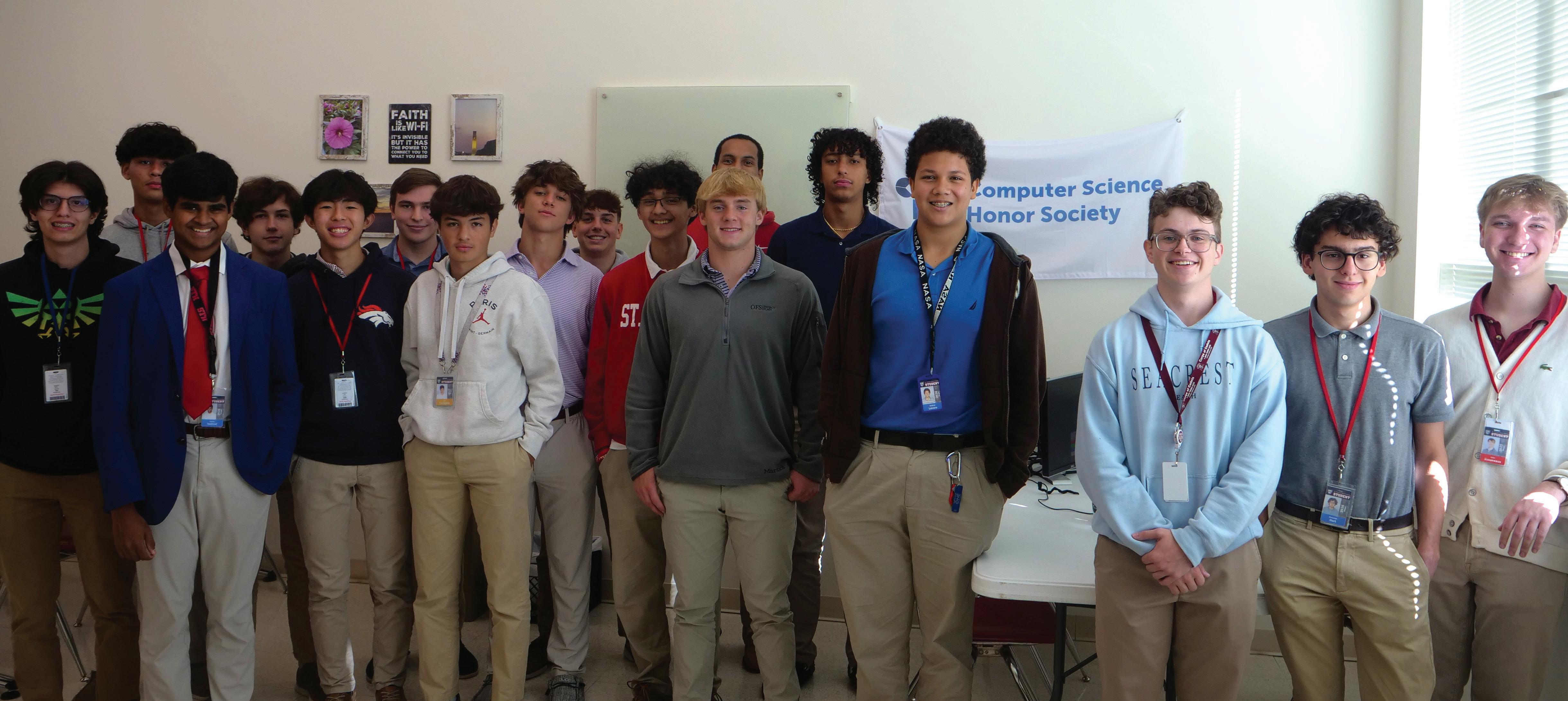 The Computer Science Honor Society (CSHS), managed by Communications and Technology teacher Deanna Woodlief, is an achievement-based organization. Students must take an AP computer course to apply, and their acceptance is contingent upon their GPA, Dean’s Office standing, and their responses to a Computer Science questionnaire. The St. Thomas Chapter of the Computer Science Honor Society strives to uphold the Mission of the school – Teach me Goodness, Discipline, and Knowledge – with an emphasis on the Honor Society’s Core Values – Equity, Service, and Excellence. The organization regularly hosts seasonal coding camps and provides tutoring services for their fellow Eagles to fulfill their service-minded mission. The coding camps are a consistent favorite among Computer Science Honor Society members.