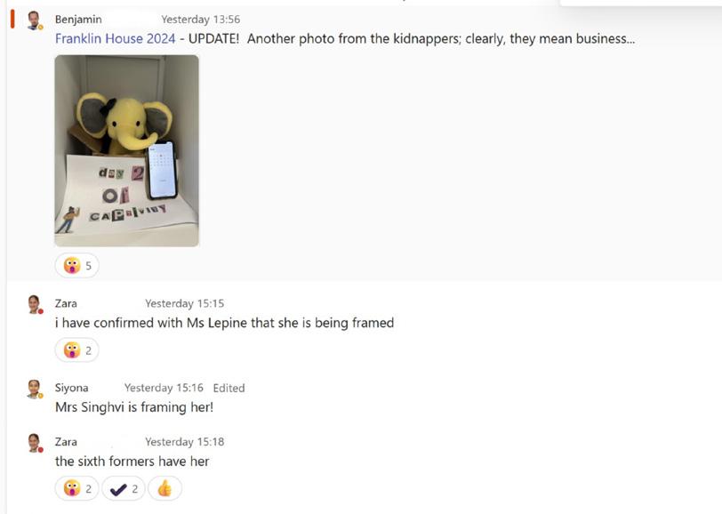 Many of you might have seen Franklin house’s mascot Elsie the elephant around school. She hides herself in random spots across the grounds, and the first person in Franklin to spot her wins a delicious prize in house assembly.