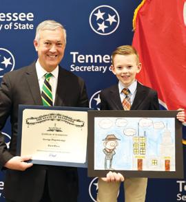 Kindergartener George Dagermangy is the winner of the 2025 Tennessee Civics Essay contest! This year’s contest was open to all Tennessee public, charter, private school, or home school association students in grades K-12. Over four thousand students participated. This year’s theme: “Why Trusted Sources Matter.” In addition to winning a TNStars 529 College Savings Program scholarship, George was invited to visit the State Capitol to receive an award. Pictured left is George with Secretary of State Tre Hargett. Congratulations, George!