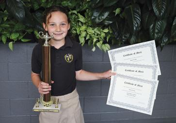 Academic Honors – All Grades 90 or Above in All Grading Periods: 5th grade – Kellen Espaillat, Caroline Freiburg, Carrie Gambrel, Scarlett Grisham, Ben LaLonde, Tenley Mantinan, Cecilia Petty, Lucy Reddington, Keaton Saivar, Ada Schapman, Parker Wallace; 6th grade – Grace Conway, Grey Daigle, Violet Friedl, Haddie Gebeau, Patrick Horvath, Christian Orellana, Mili Sanchez Garcia, Andrew Sevier, Andrew Tinker, Tommy Tracy, Charlie Vaughan, Anna Clare Weed; 7th grade – Lucy Anton, Parker Atwood, Henry Curley, Mollie Donlon, Lexi El-Shishini, Mason Johnson, Daniel McRae, Raife Mikhail, Adelina Montagnino, Elly Nicholson, Levi O’Rourke, Gabby Perez, Griffin Reddington, Avarie Trinidad, Maria Valiquette; 8th grade – Annie Bain,