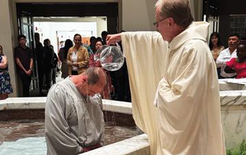 On Sunday, January 19, Tommy (6th grade), Talia, and Torah (Kindergarten), were baptized with many faculty, staff, family, and friends present. Tommy received his First Communion the following Wednesday at an all-school Mass. Tom, who volunteers as a LEGO League coach at Saint Henry, began attending Order of Christian Initiation of Adults (OCIA) classes at the church. OCIA, formerly known as RCIA, is a process by which teens and adults seeking some or all of the Sacraments prepare to be received into the Church. At Easter Vigil Mass, Tom, a catechumin, was was baptized, received the Eucharist, and was sealed with the Holy Spirit with his wife and children at his side.