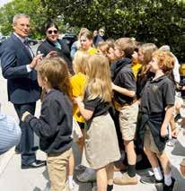 3rd grade meets Governor Bill Lee (left) at the Capital, who joins the class in singing “Happy Birthday” to Livvie Macedo