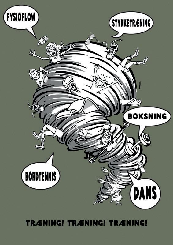Tegning: Henning Poulsen, Viborg. Henning Poulsen tegnede tegningen til kreds Midtnordjyllands stand på Seniorfolkemødet i Viborg 25. juni som illustration af udfordringerne med træning, når man har parkinson.