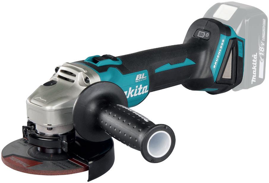 Kulløs motor til forbedret ydelse ved krævende opgaver. Elektronisk bremse, stopper hurtigt skiven, når kontakten udløses. 2 positioners sidehådtag til bedre kontrol og komfort. Leveres ekskl. batt. og lader.