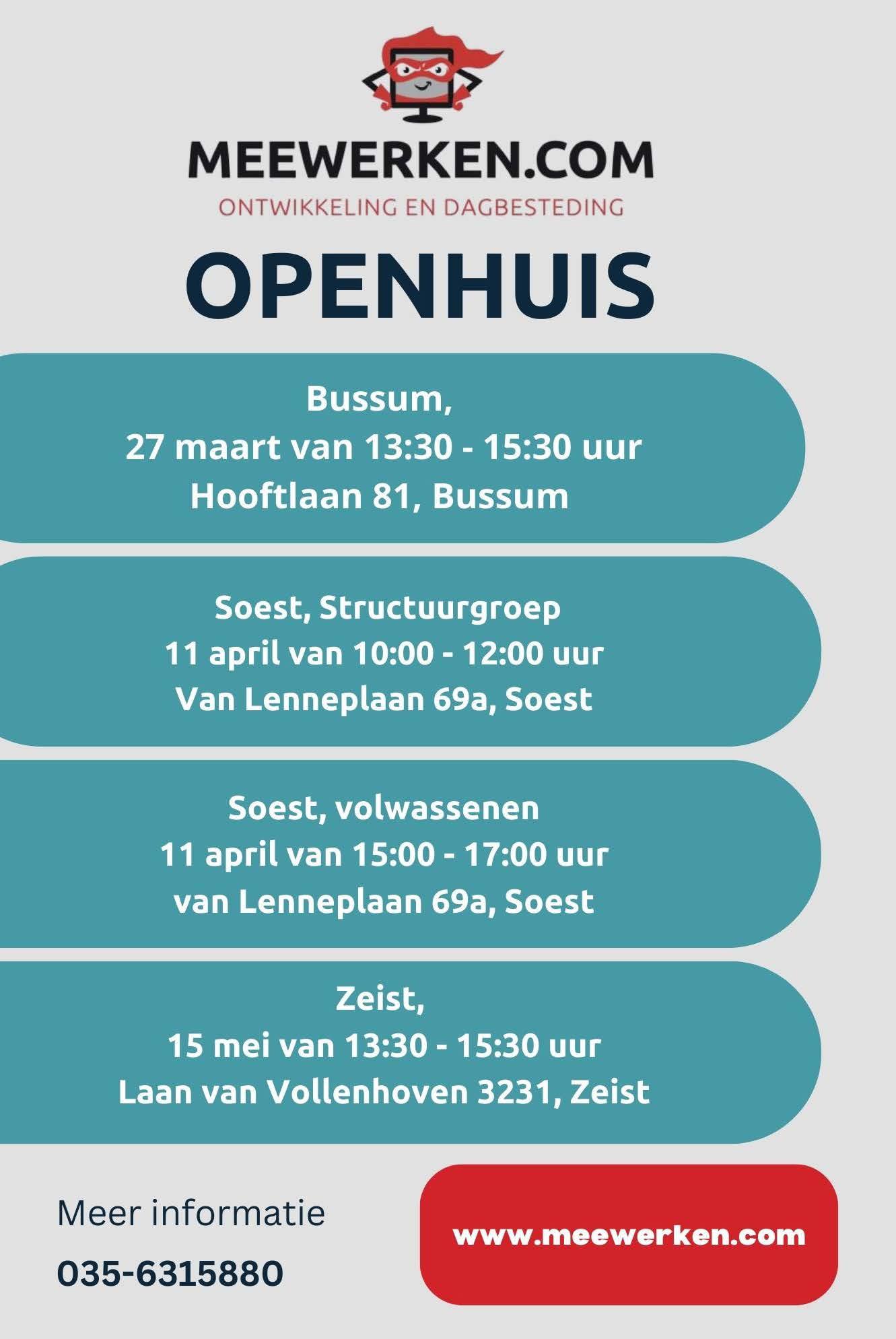 Daarnaast kijken we uit naar een speciale dag die we op 27 maart van 13.30 uur tot 16.00 uur organiseren: de vrienden- en familiedag! Deze middag is een geweldige gelegenheid voor familieleden en vrienden van de meewerkers om een kijkje te nemen wat we hier doen bij Meewerken. Het is altijd fijn om je dierbaren te kunnen laten zien wat je doet, en natuurlijk willen we hen ook een gezellige tijd bieden. Er zal koffie en iets lekkers zijn, dus kom gerust langs voor een ontspannen en informele ontmoeting. We hopen veel van jullie te mogen verwelkomen en er samen een gezellige middag van te maken!